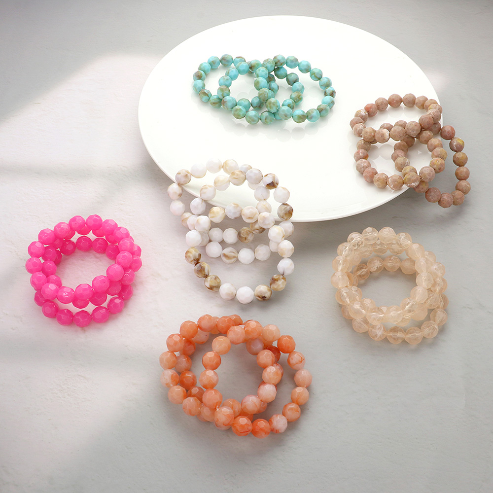 3PCS - Faceted Beaded Stretch Multi Layered Bracelets