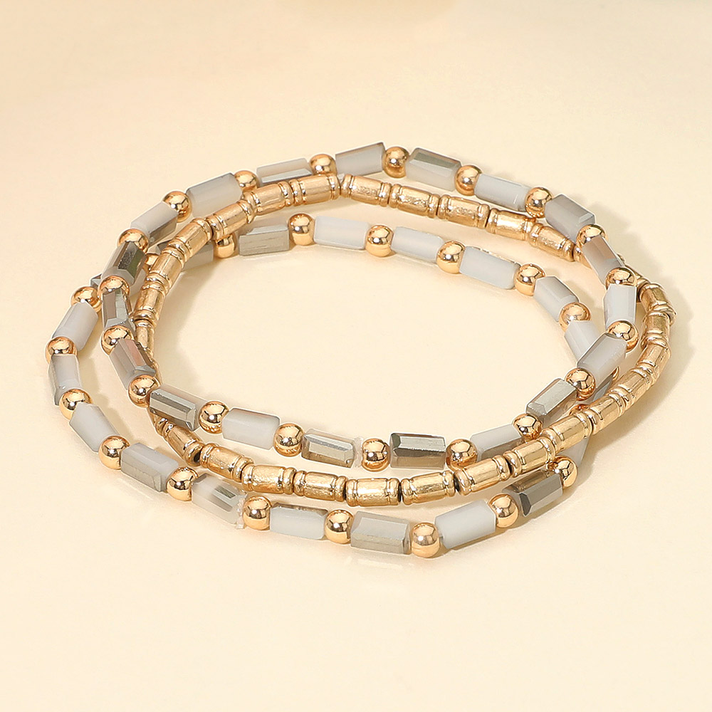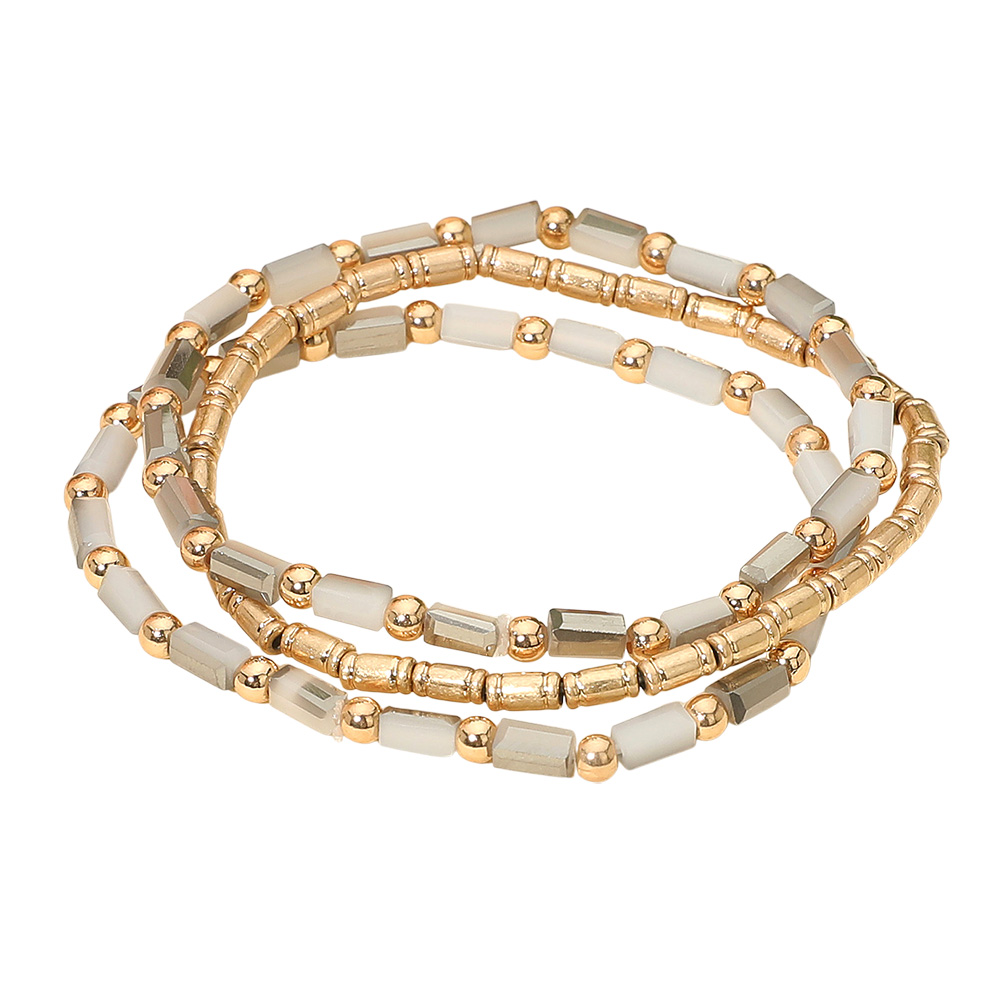 3PCS - Faceted Tube Beaded Stretch Multi Layered Bracelets