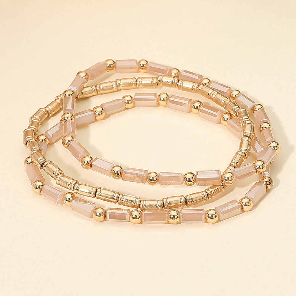 3PCS - Faceted Tube Beaded Stretch Multi Layered Bracelets