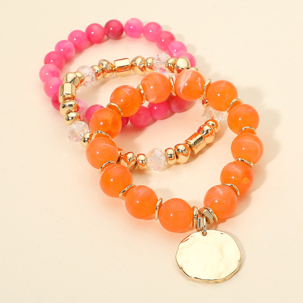 Details • Size : 1.25" H • Charm Size : 1" X 0.9" • Stretchable • Stylish stretch bracelet set featuring smooth round beads, faceted accents, and a dangling disc charm for added movement. Designed for comfortable wear and easy stacking, this versatile bracelet set elevates everyday outfits and pairs effortlessly with casual or dressy looks. • Lead and Nickel Compliant