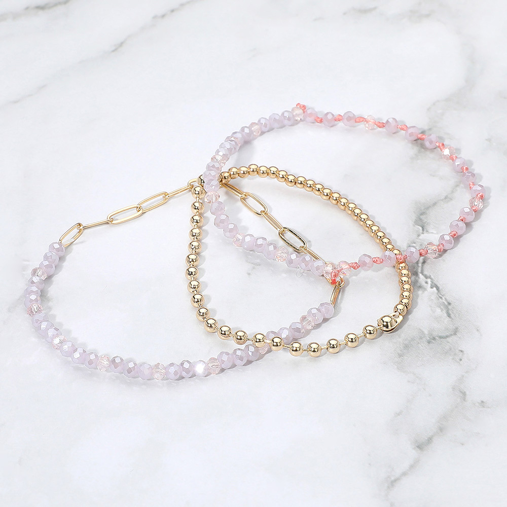 3PCS - Metal Ball Faceted Beaded Paperclip Chain Stretch Multi Layered Bracelets