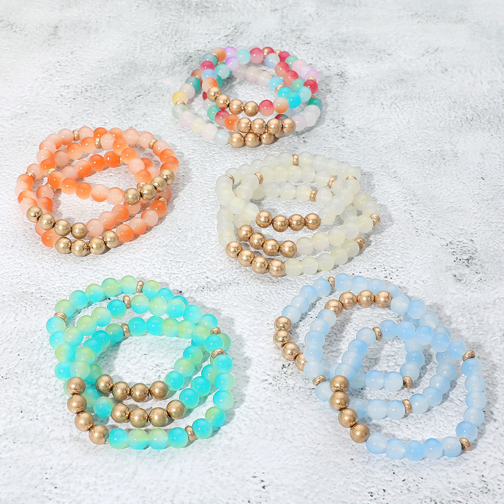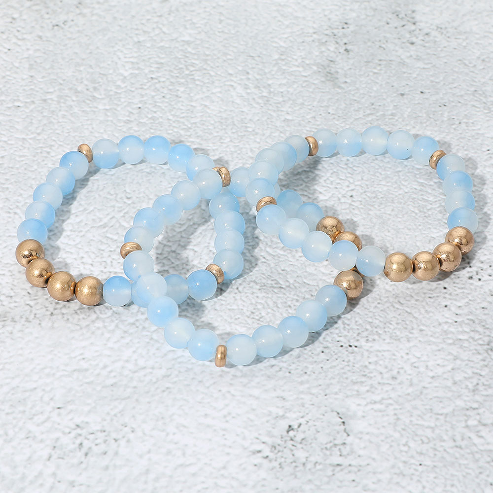 • Stylish 3-piece beaded bracelet set featuring smooth round beads and polished metallic accents. Comfortable stretch design makes it easy to wear for daily looks or special occasions.