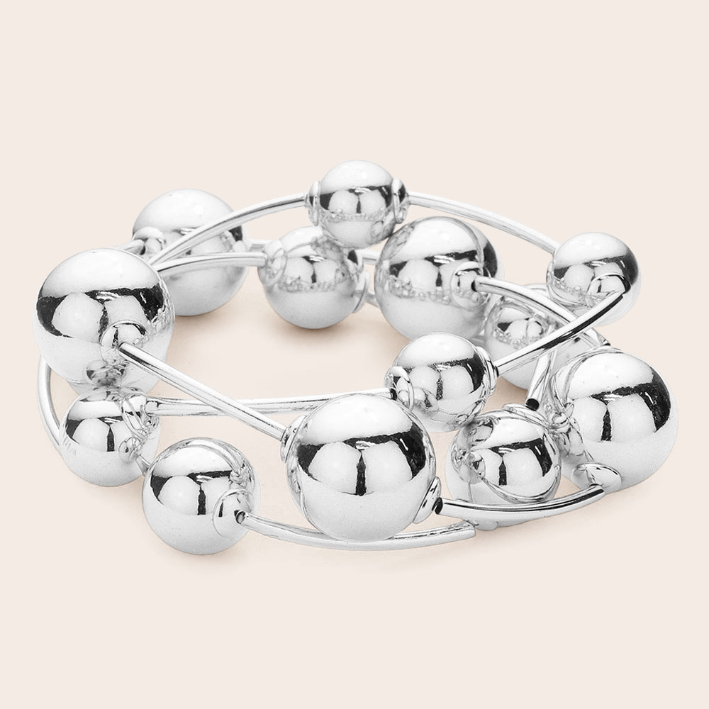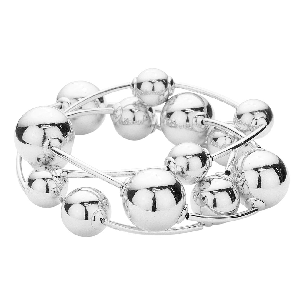 • Enhance your style with this modern beaded bangle set featuring sleek, polished spheres on layered metal bands. Perfect for stacking or wearing solo, this elegant design adds a refined statement to both casual and formal ensembles with timeless sophistication.