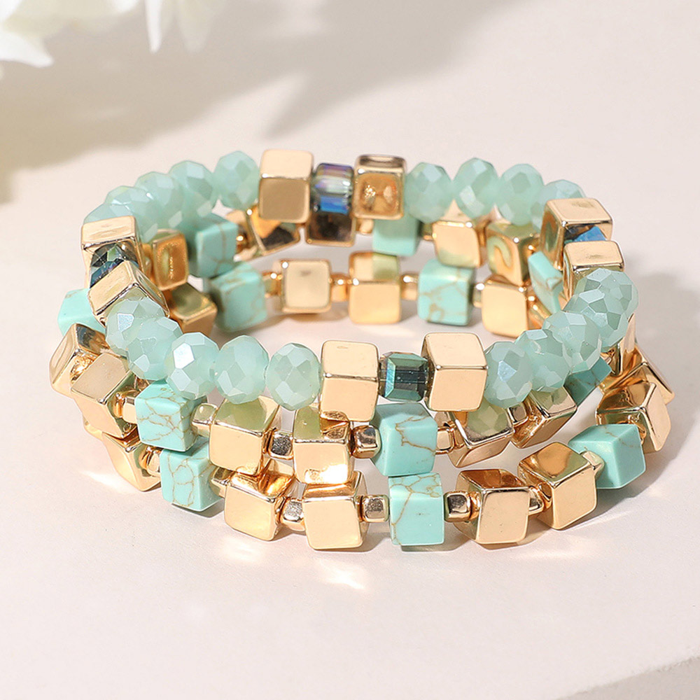 3PCS - Metal Cube Faceted Beaded Stretch Multi Layered Bracelets