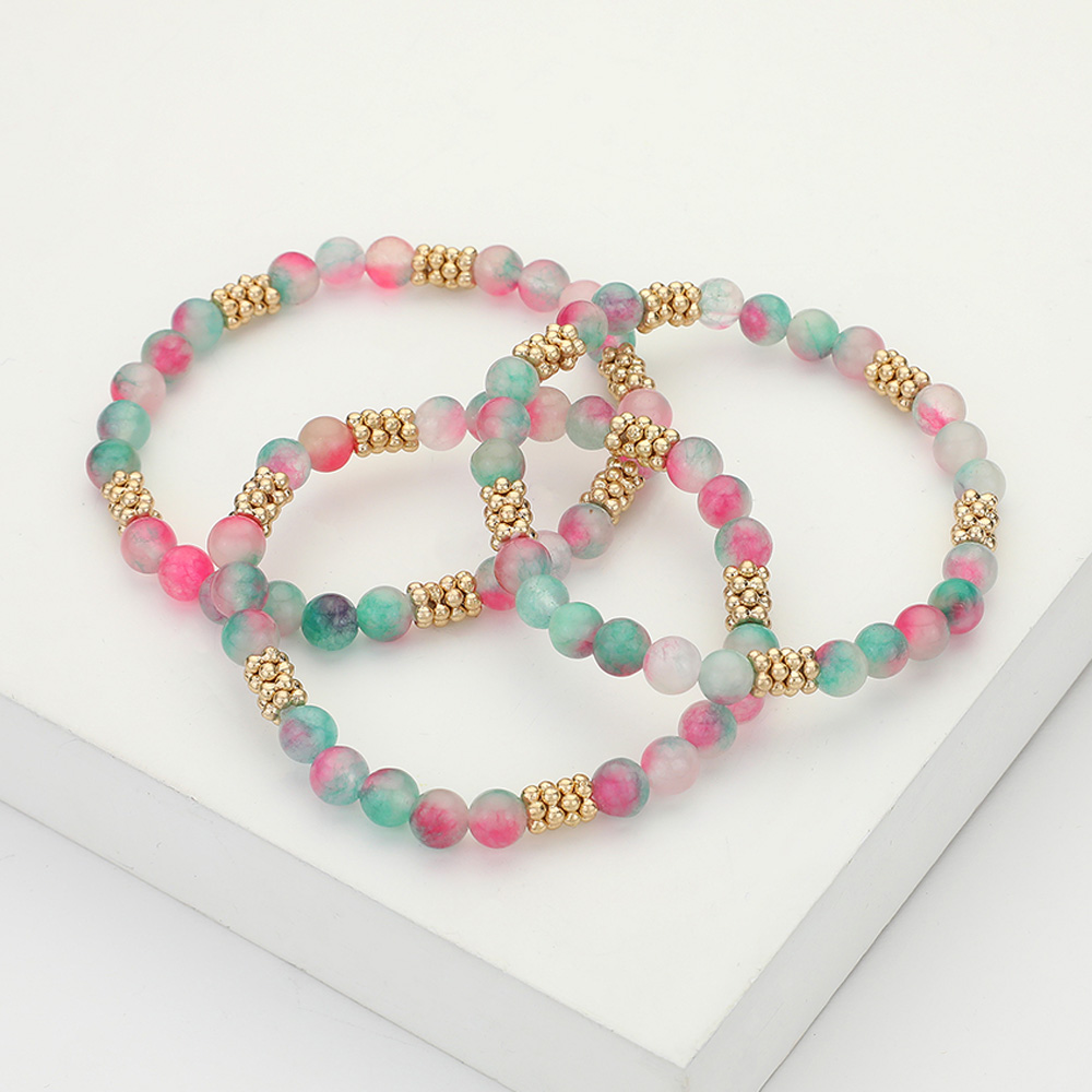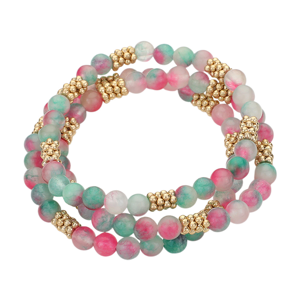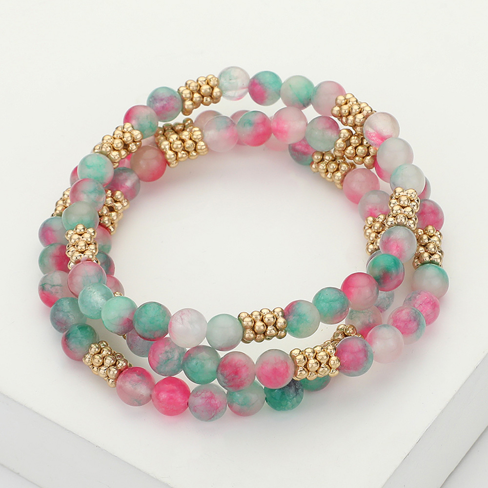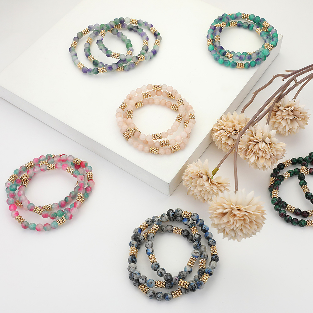 3PCS - Natural Stone Metal Bubble Bar Beaded Stretch Multi Layered Bracelets