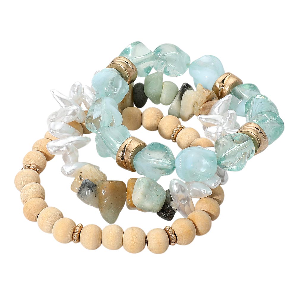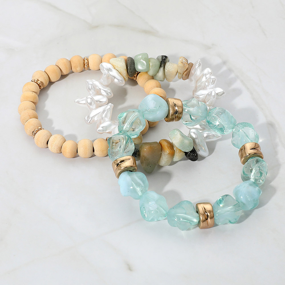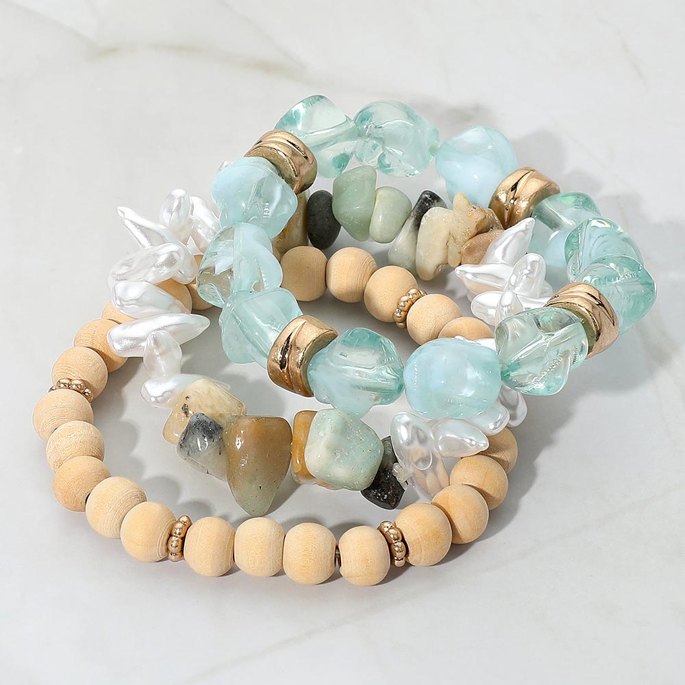 3PCS - Natural Stone Pearl Wood Beaded Stretch Bracelets