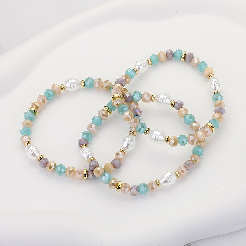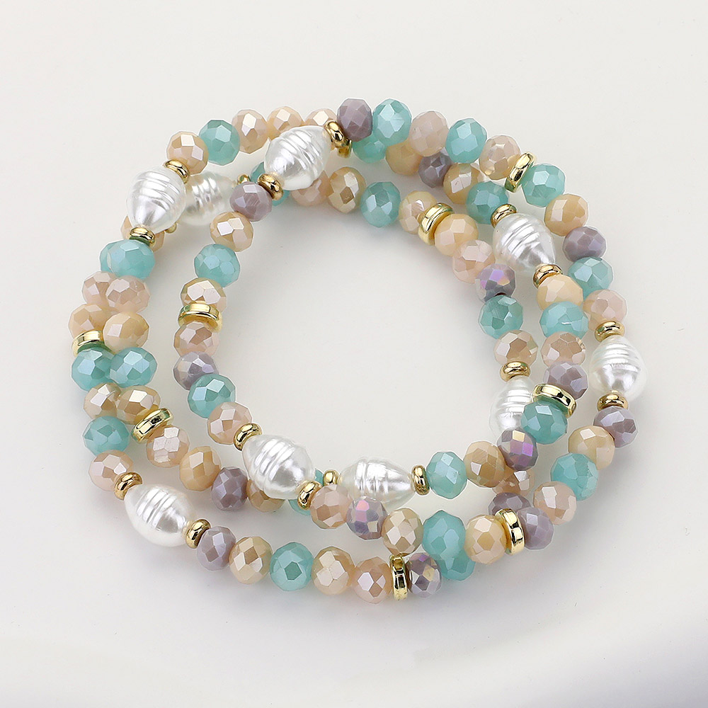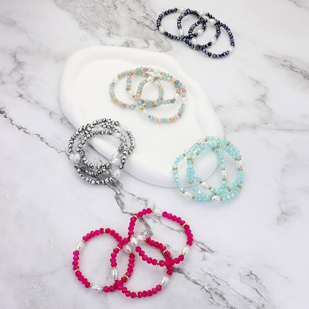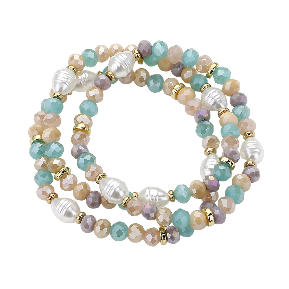 3PCS - Pearl Faceted Beaded Stretch Multi Layered Bracelets