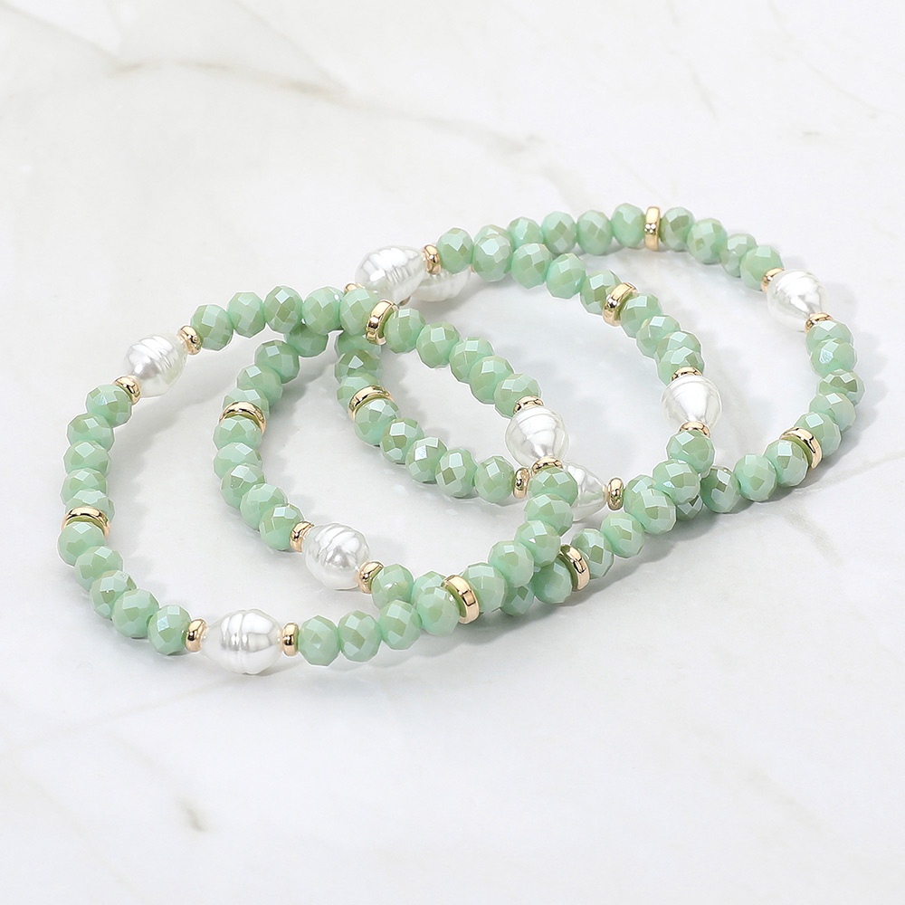 3PCS - Pearl Faceted Beaded Stretch Multi Layered Bracelets