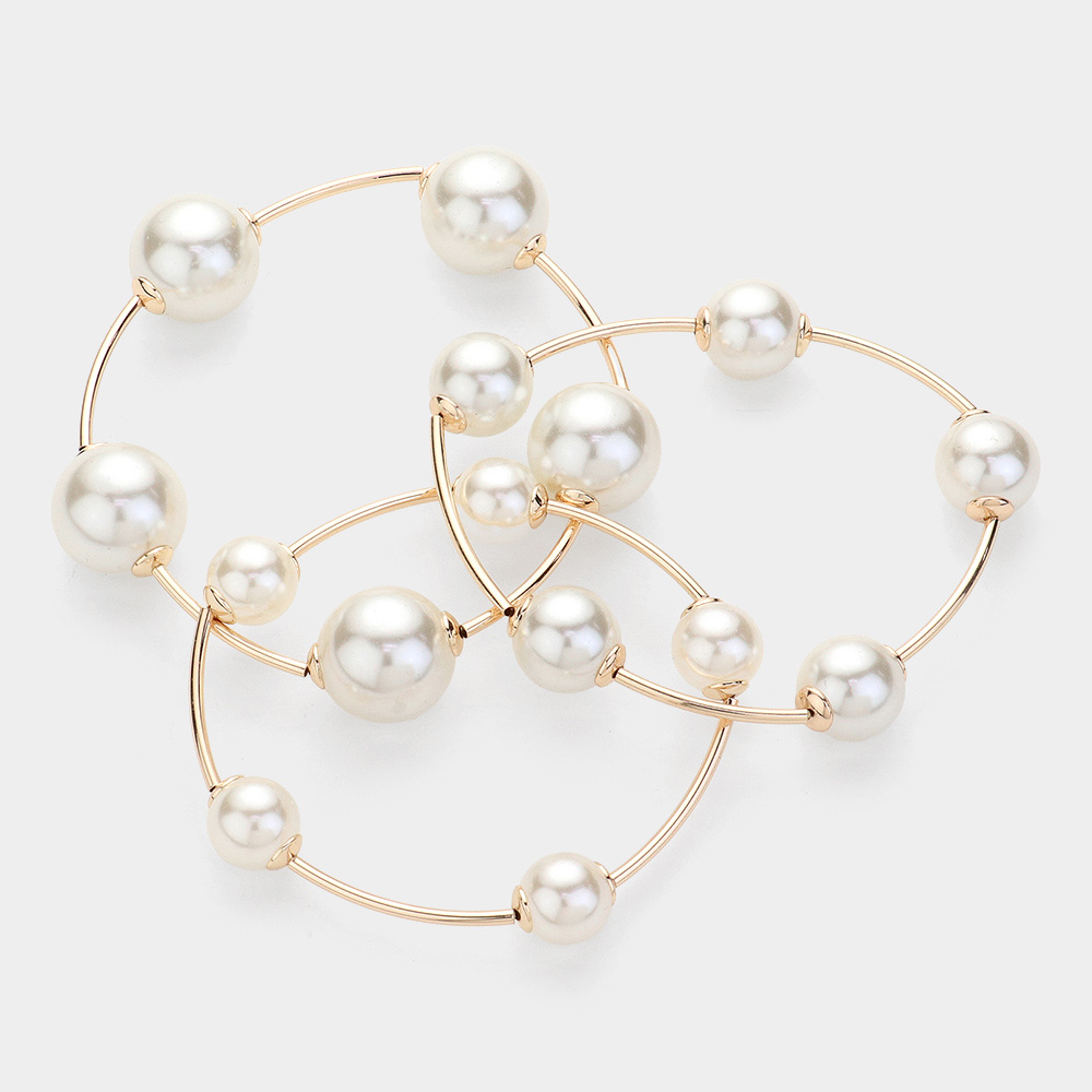 Details • Size : 1.75" H • Stretchable • This contemporary stretch bracelet set features a clean, minimalist design with smooth graduated beads arranged on slender bands. Lightweight and easy to style, it adds a polished touch to everyday looks and layers beautifully for an effortlessly chic statement. • Lead and Nickel Compliant