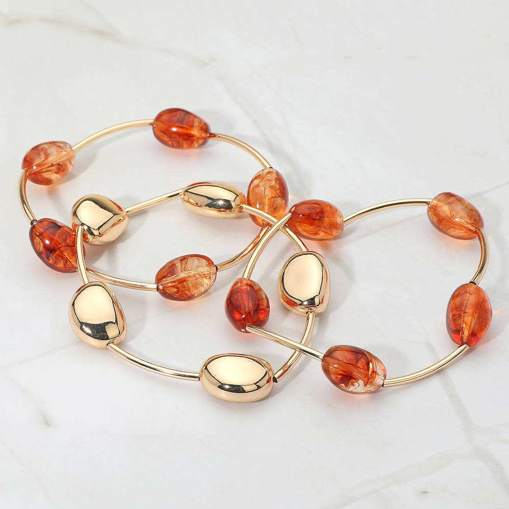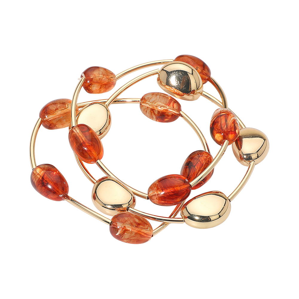 3PCS - Resin Metal Pebble Wire Beaded Stretch Multi Layered Bracelets