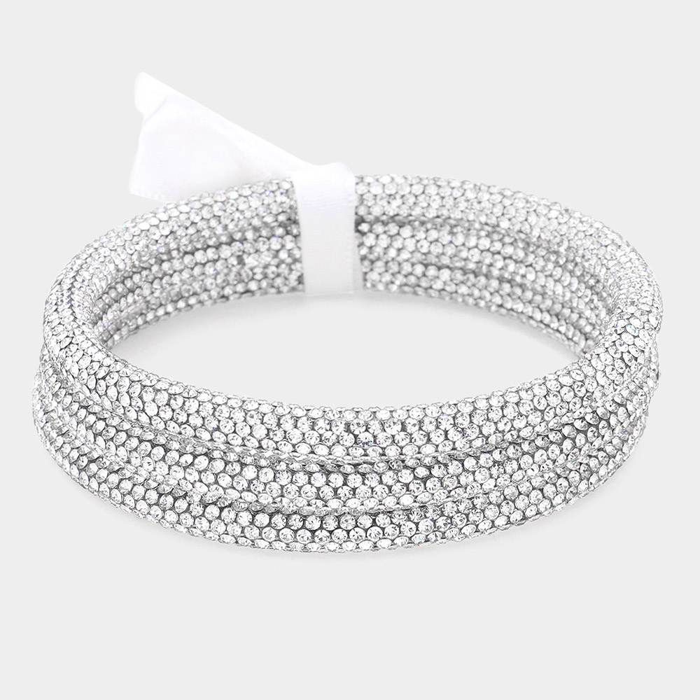 • Shine from day to night with this sparkling rhinestone wrap bracelet. Featuring multiple rows of shimmering crystals finished with a chic ribbon tie, this bracelet adds effortless glam to any outfit. Its flexible wrap design ensures a comfortable fit while giving the look of stacked layers. Perfect for parties, weddings, or elevating everyday style, this bracelet is a must-have statement accessory.