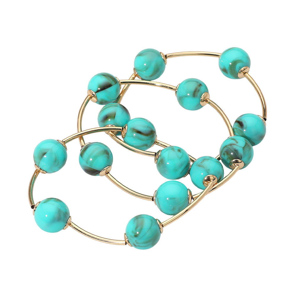 Details • Size : 1.6" H • Stretchable • Stylish bangle bracelet set featuring smooth wire bands and rounded beads arranged in a layered design. A versatile accessory that adds a touch of elegance to everyday and dressy outfits, perfect for stacking or wearing solo.