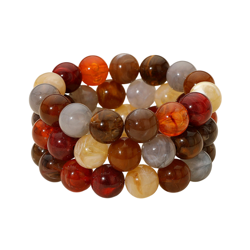 3PCS - Round Resin Ball Beaded Stretch Multi Layered Bracelets