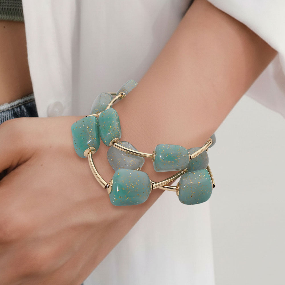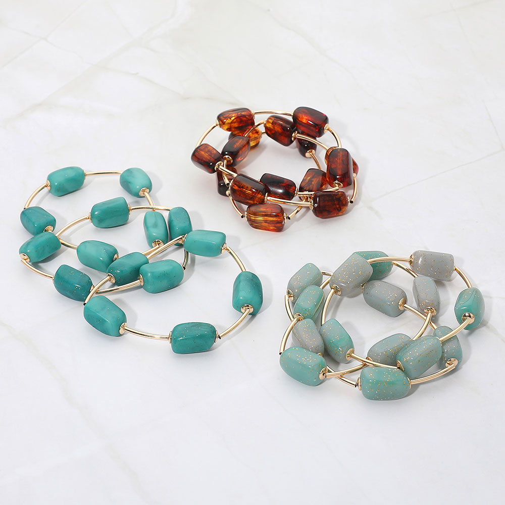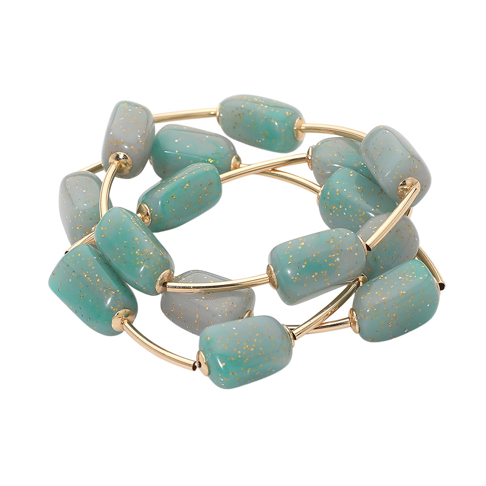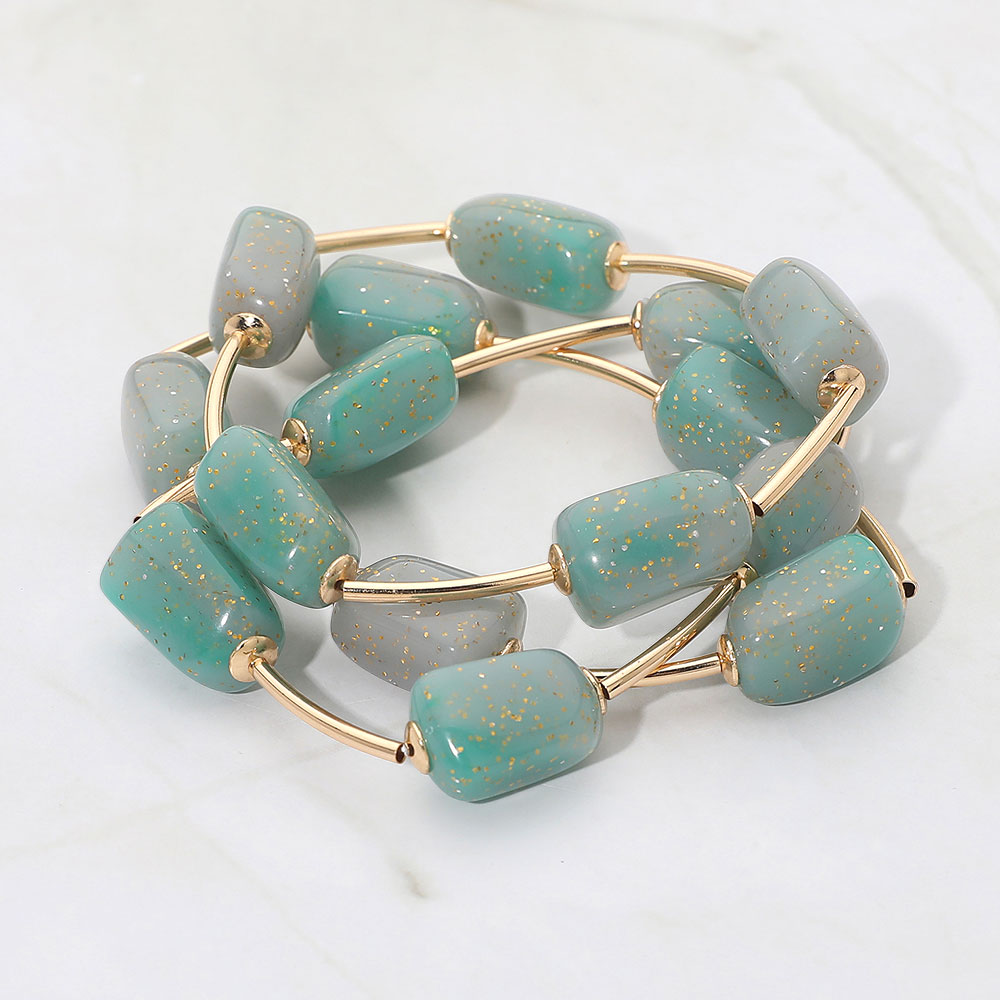 3PCS - Speckled Resin Pebble Metal Bar Beaded Stretch Multi Layered Bracelets
