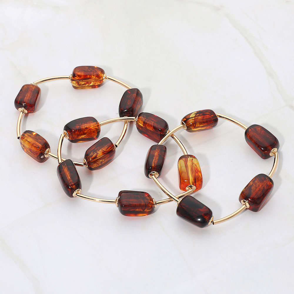 3PCS - Speckled Resin Pebble Metal Bar Beaded Stretch Multi Layered Bracelets