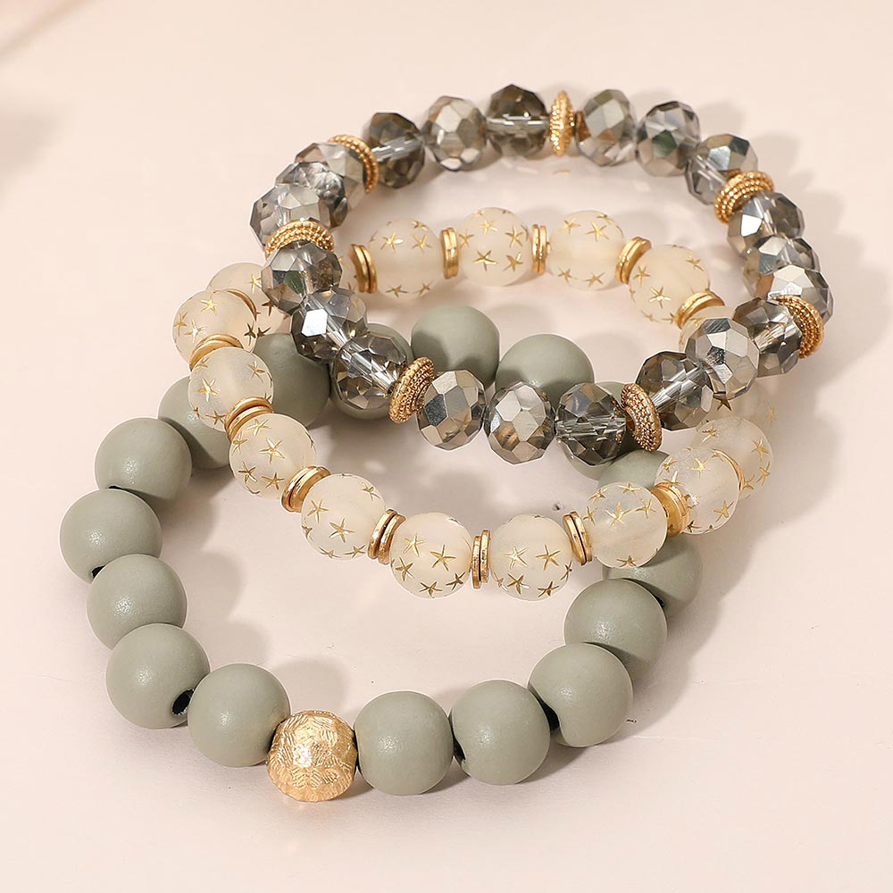3PCS - Stackable Wooden Faceted Beaded Stretch Multi Layered Bracelets