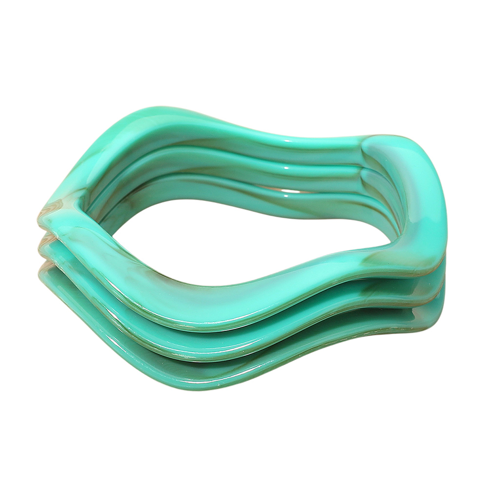 Details • Size : 1" H, 2.5" D • Add a bold twist to your look with this 3-piece resin bangle set featuring a unique wavy design. Lightweight and stackable, these bangles bring modern flair to casual or dressy outfits, making them the perfect fashion-forward accessory for everyday wear or gifting.