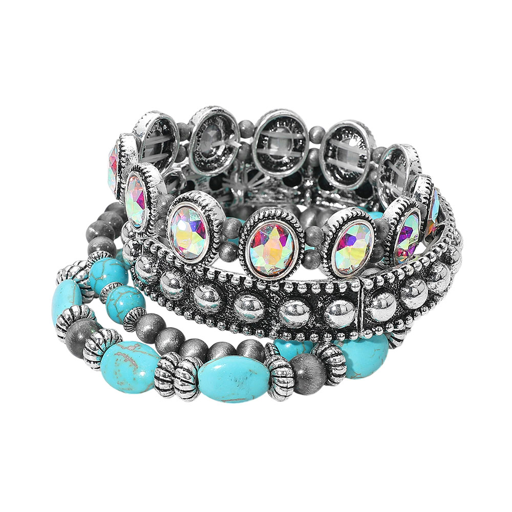 Details • Size : 1.75" H • Stretchable • This boho beaded stretch bracelet set blends shimmering accents with smooth natural beads for an effortlessly layered look. Each bracelet features unique textures and finishes that add vibrant personality, making it a versatile accessory perfect for everyday wear or festival flair. • Lead and Nickel Compliant