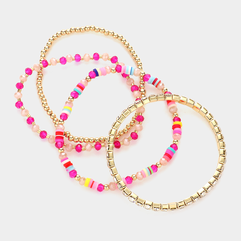 4PCS - Metal Ball Rhinestone Heishi Beaded Stretch Bracelets