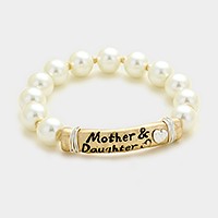 "Mother & Daughter" heart message bar pearl stretch bracelet