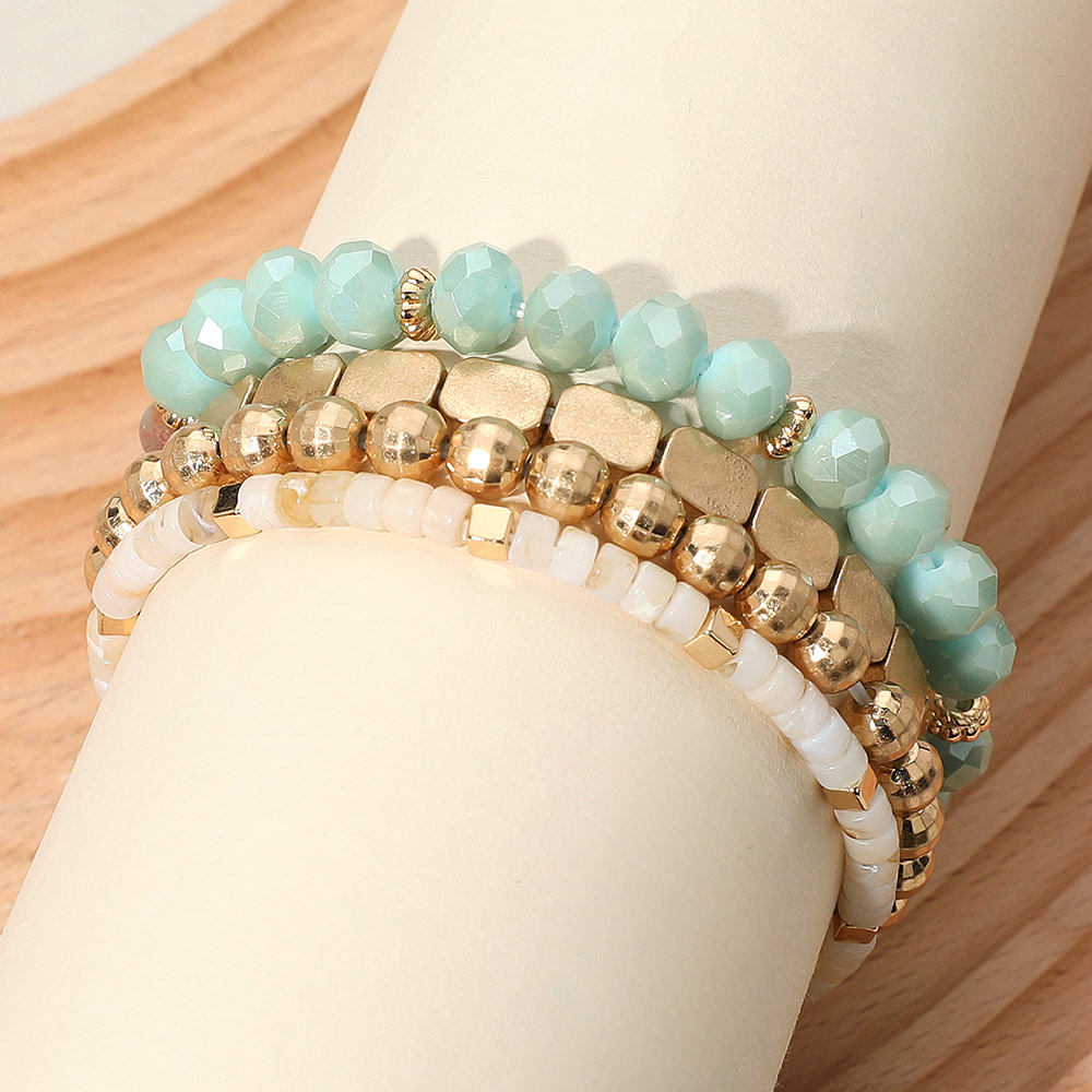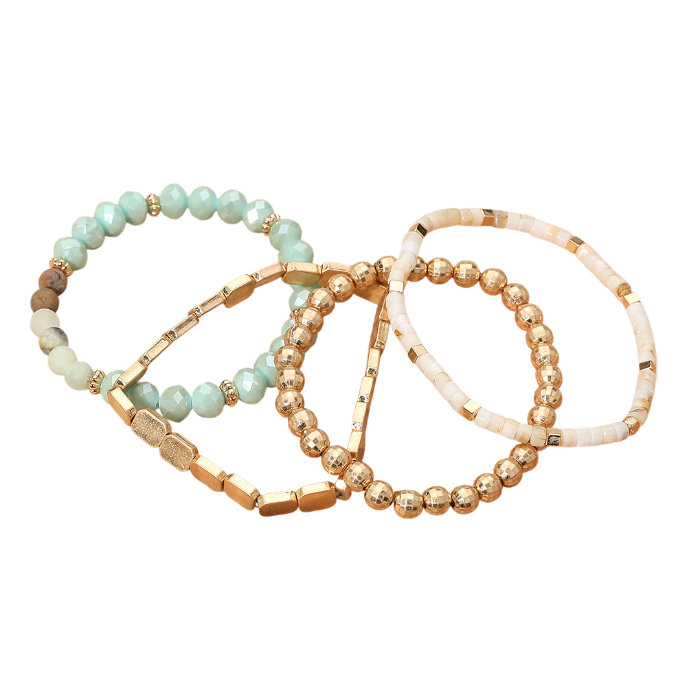 4PCS - Metal Faceted Beaded Stretch Multi Layered Bracelets