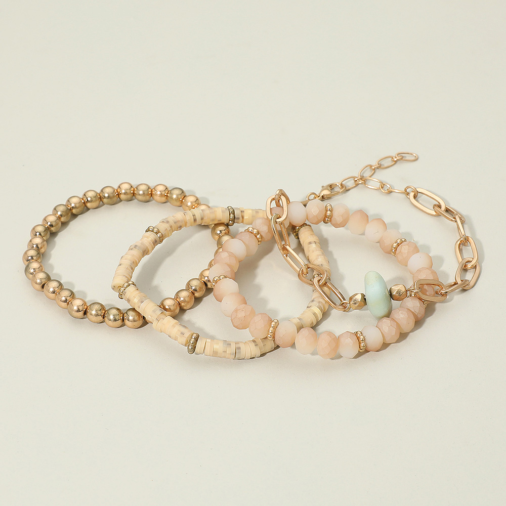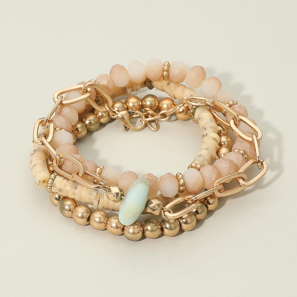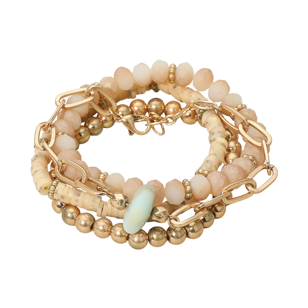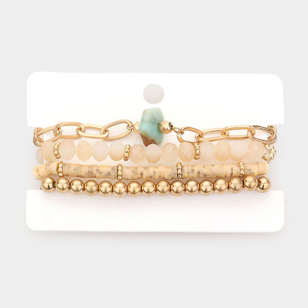 4PCS - Natural Stone Accented Chain Bracelet Multi Beaded Stretch Bracelets Set