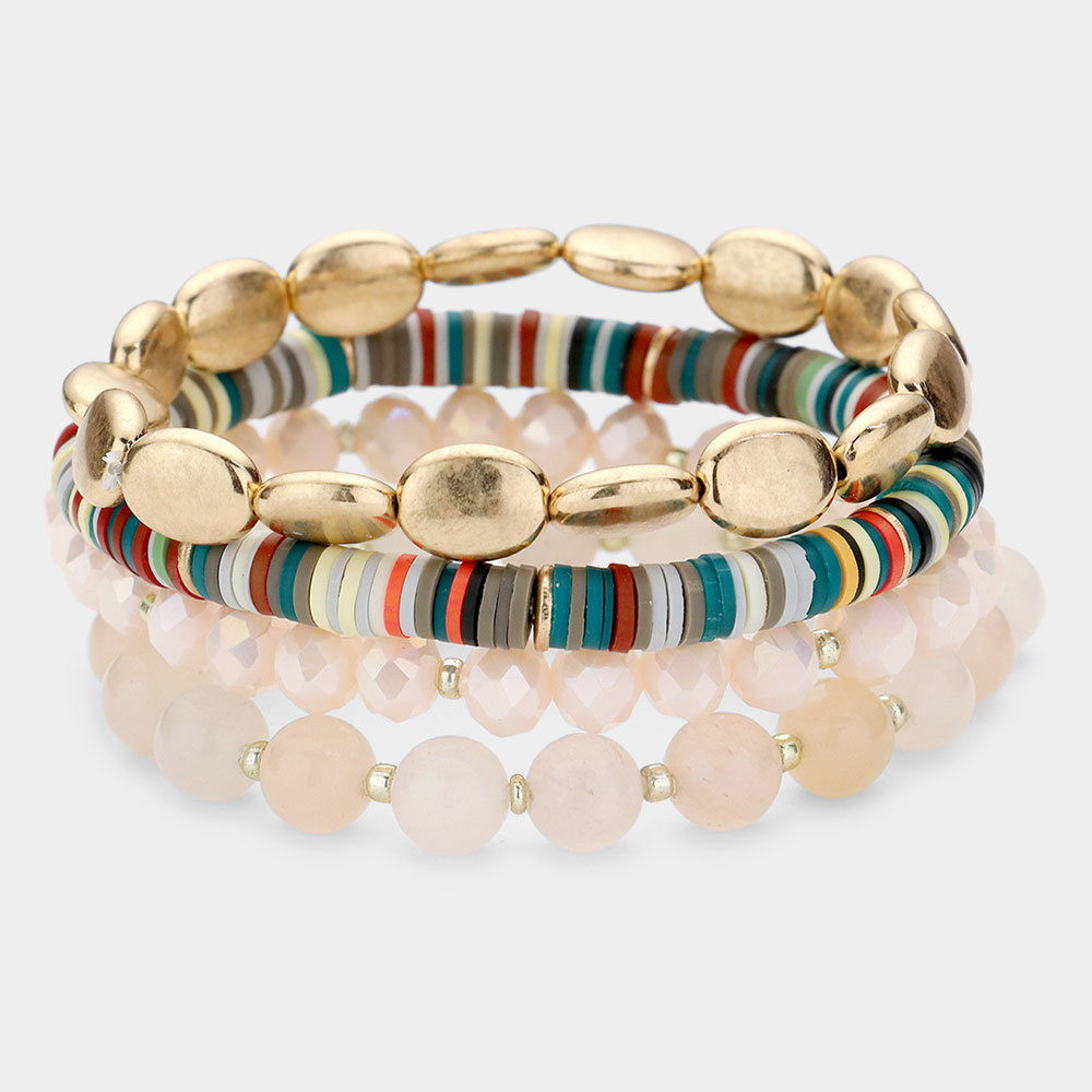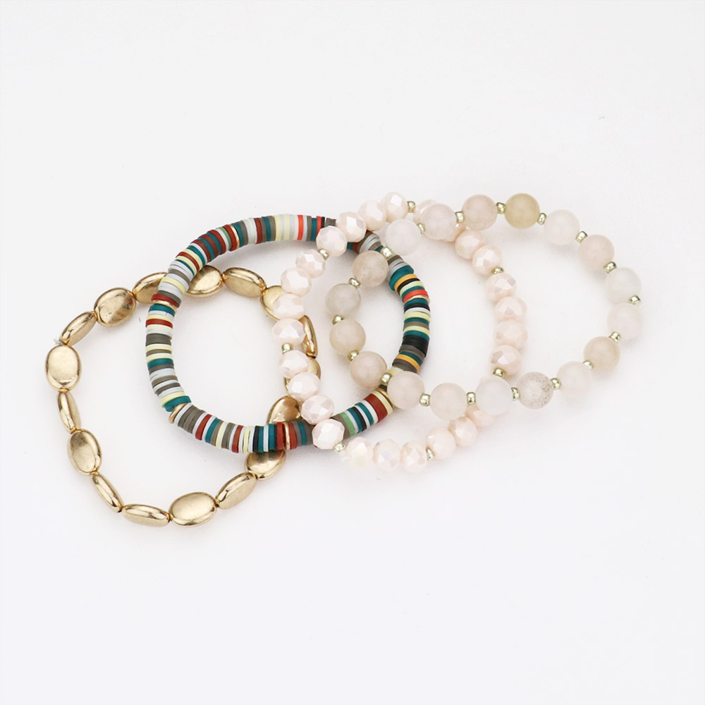 4PCS - Semi Precious Heishi Beaded Stretch Bracelets