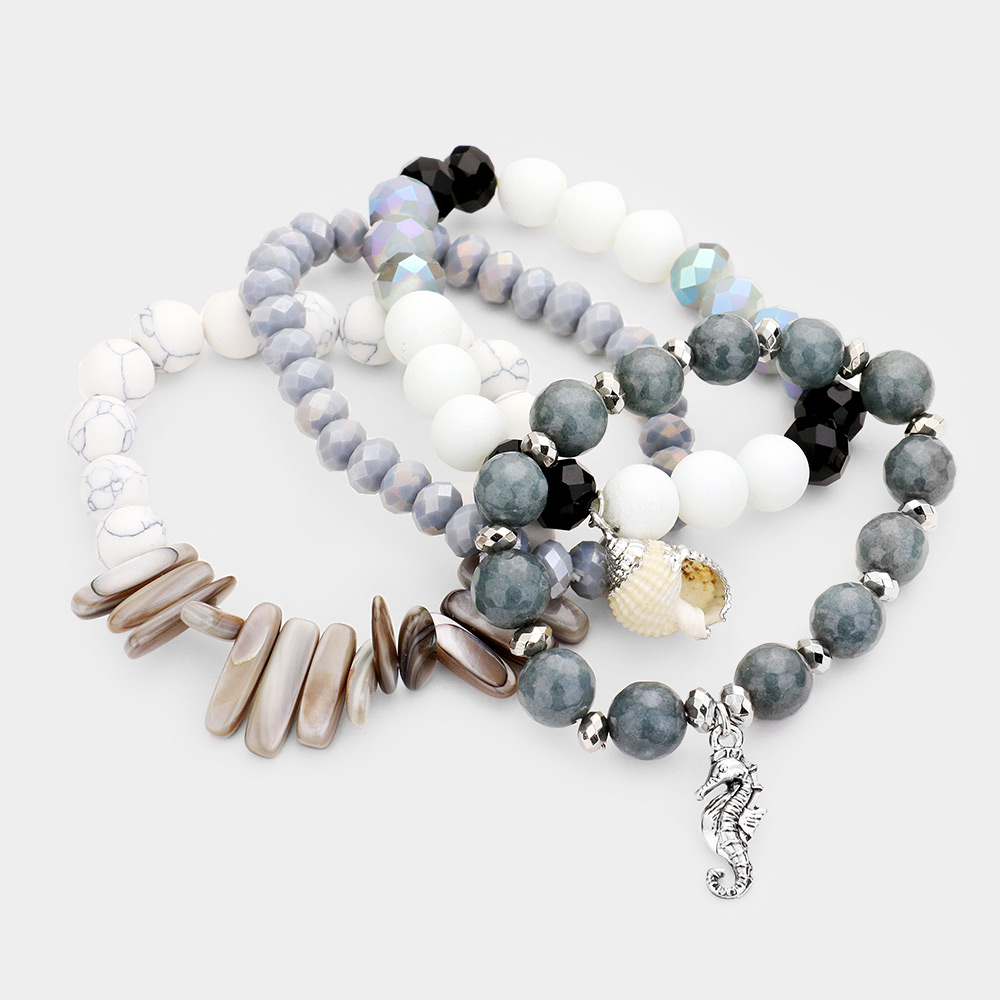 4PCS - Semi Precious Stone Seahorse Beaded Stretch Bracelets