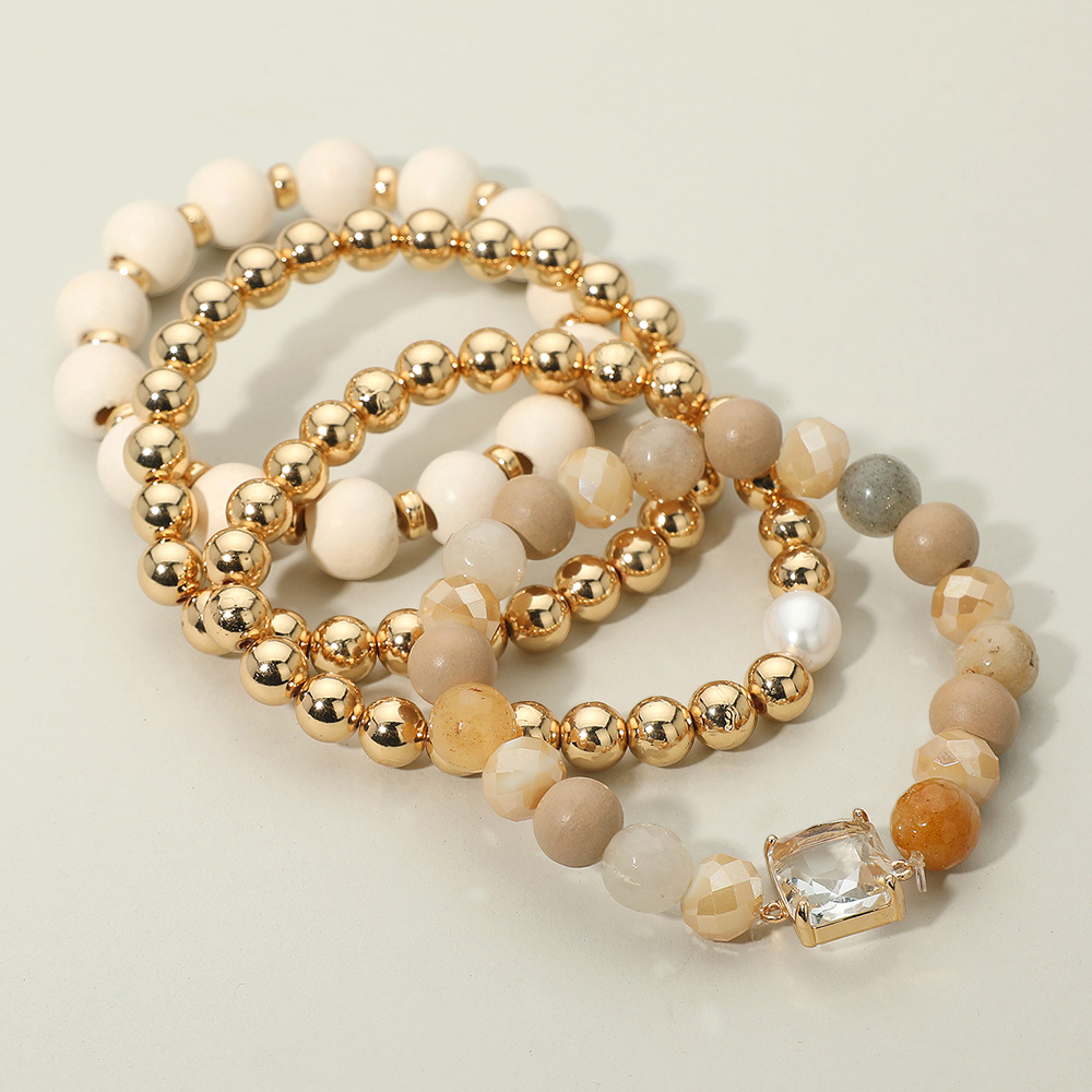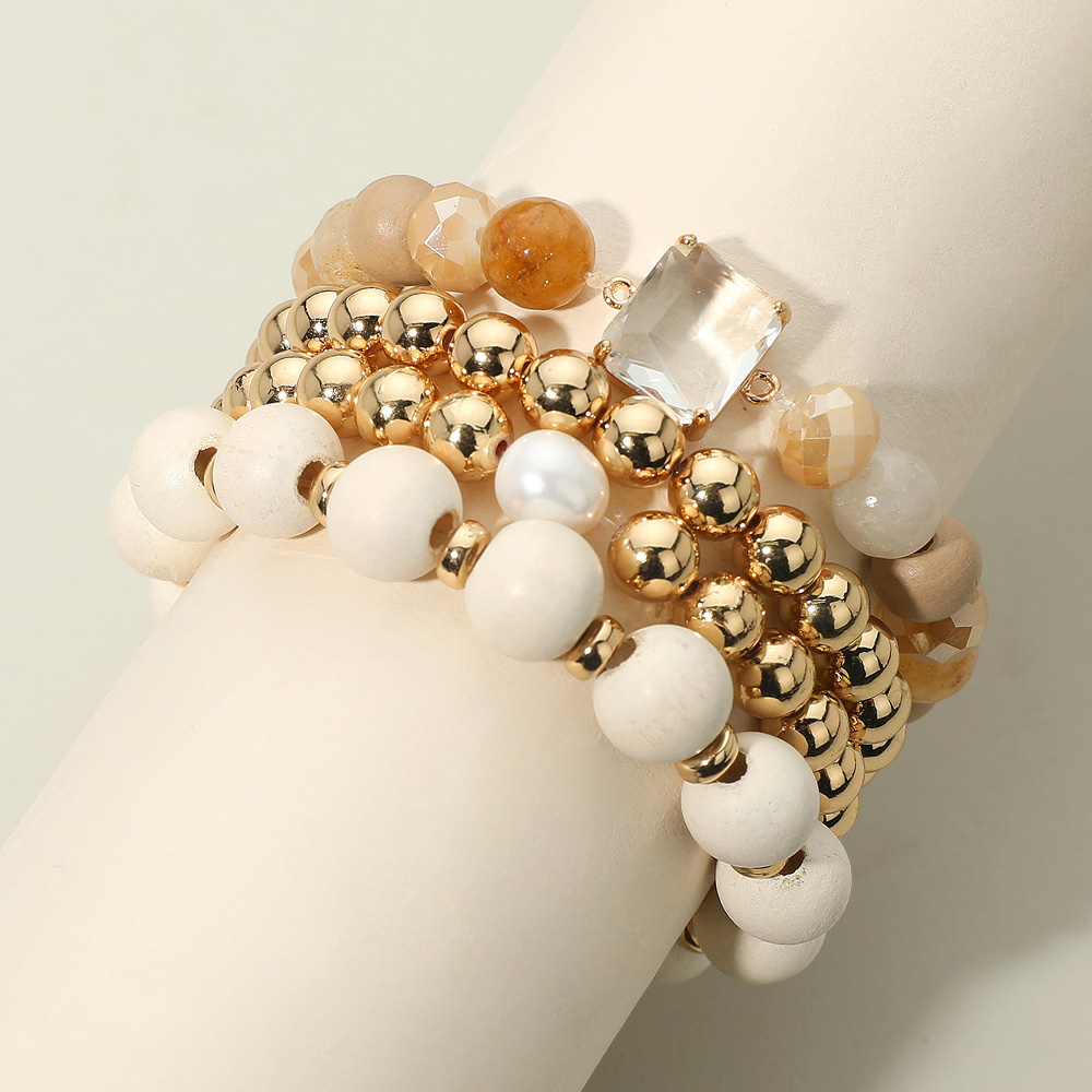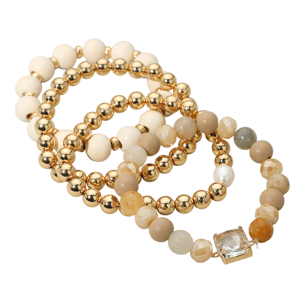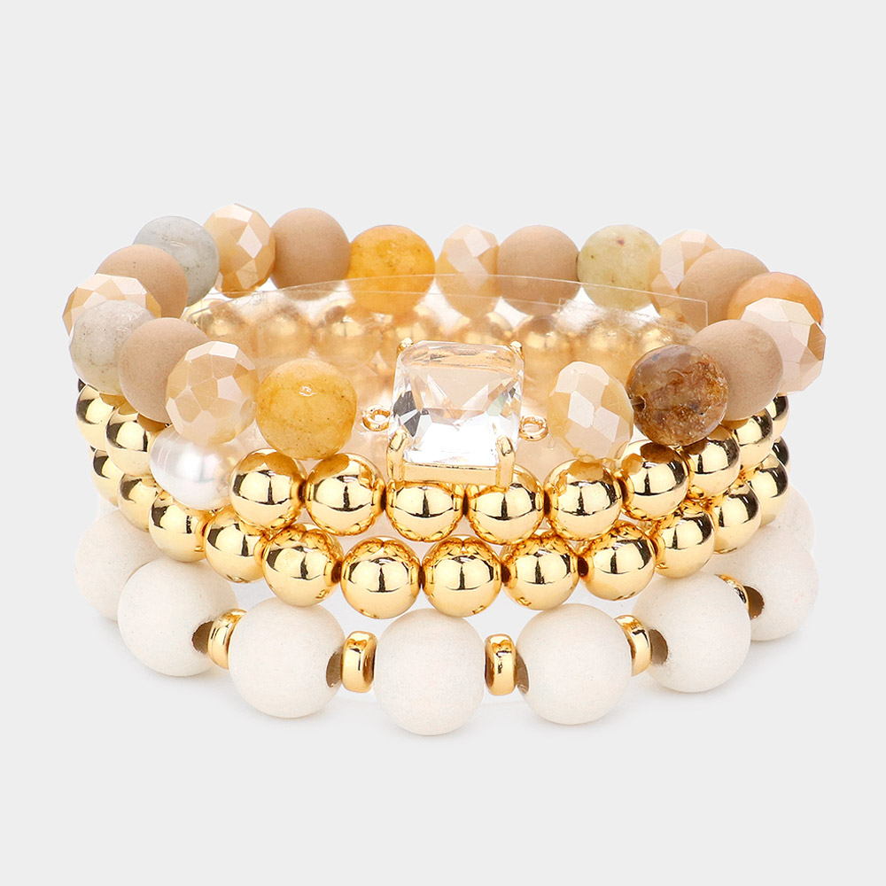Details • Size : 1.6" H • Stretchable • Complete your look with this four-piece beaded bracelet set, designed with a mix of polished and faceted beads for stylish contrast. A gemstone accent adds a touch of sophistication, making these stretch bracelets perfect for stacking or wearing solo for versatile everyday style. • Lead and Nickel Compliant