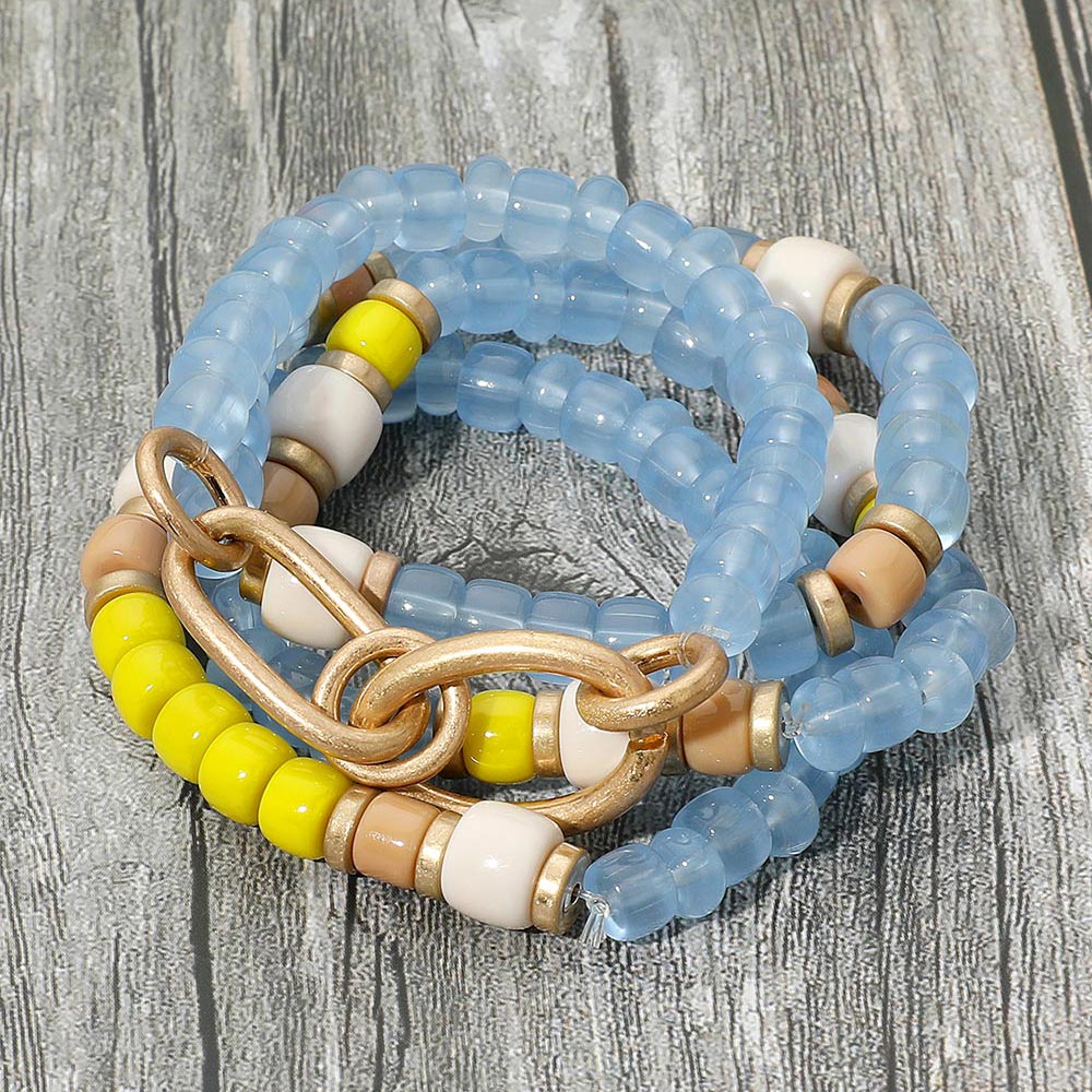 4PCS - Worn Metal Chain Link Accent Beaded Stretch Multi Layered Bracelets