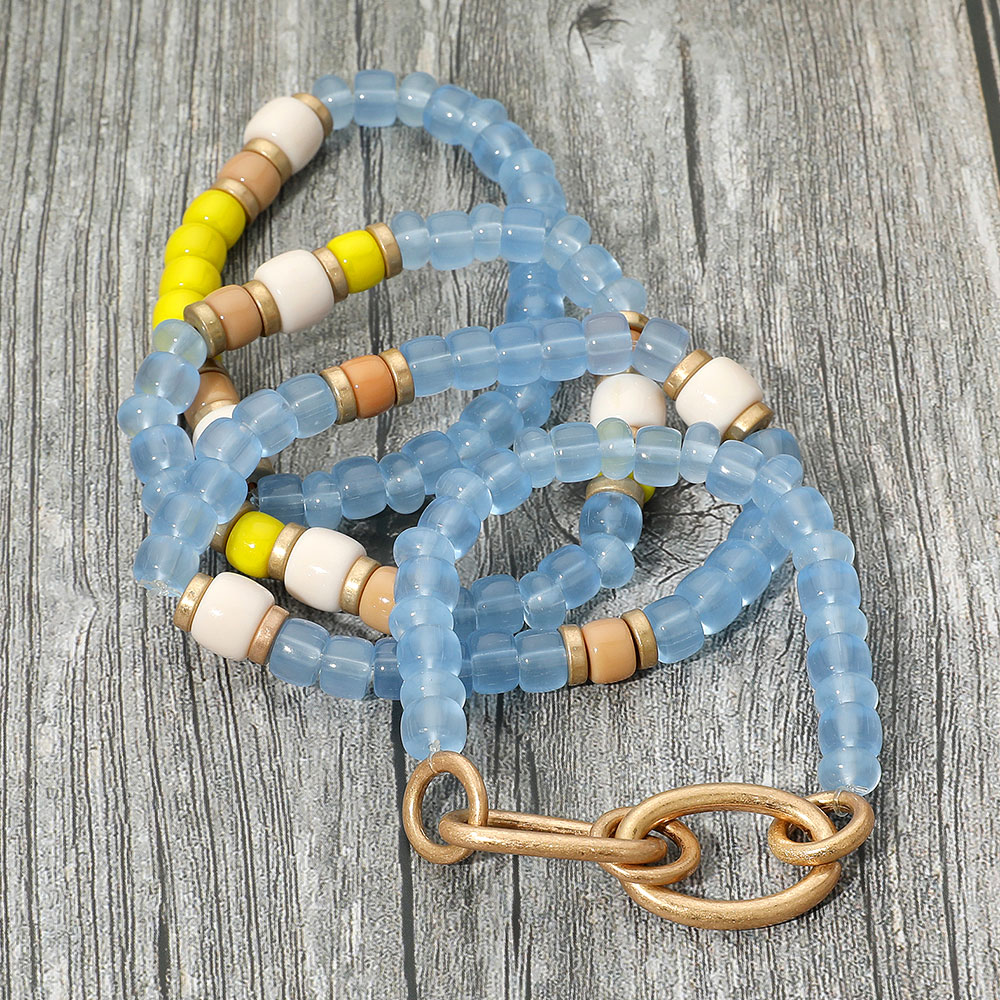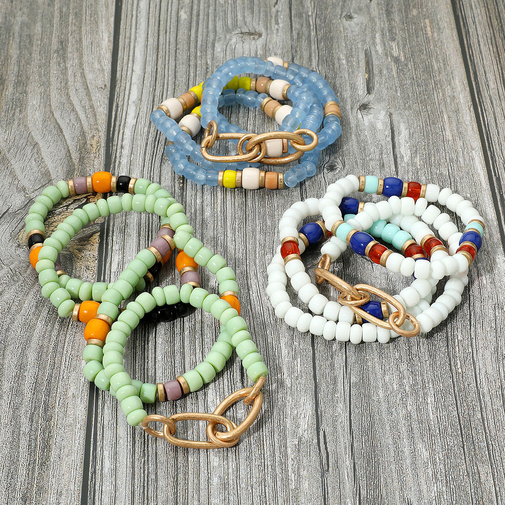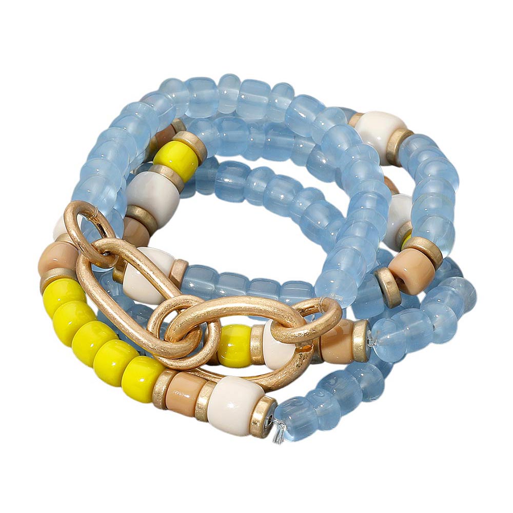 Details • Size : 1.75" H • Stretchable • Playful multi-strand bracelet set featuring colorful beads and a stylish metallic chain accent. Perfect for adding a fun, vibrant touch to casual outfits or layering for a bold statement look. • Lead and Nickel Compliant
