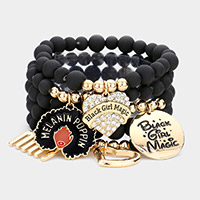 5PCS - Black Girl Magic Various Charm Multi Layered Stretchable Bracelets