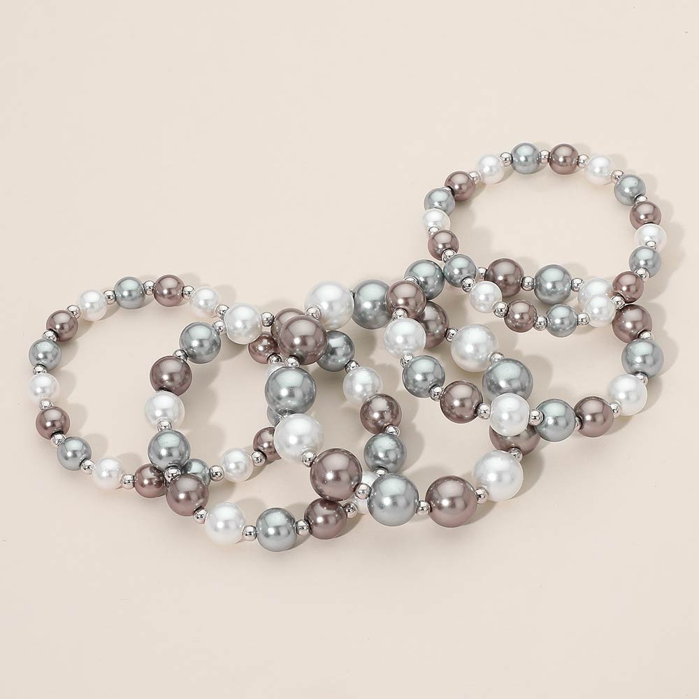 5PCS - Pearl Beaded Stretch Multi Layered Bracelets