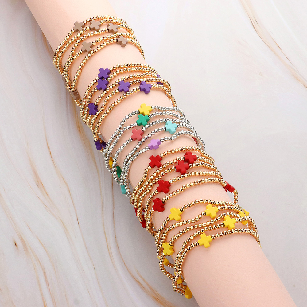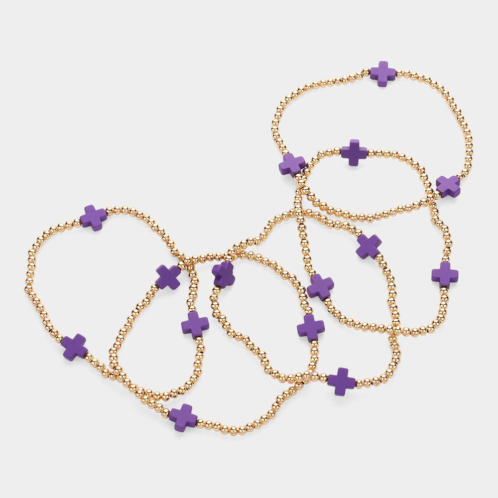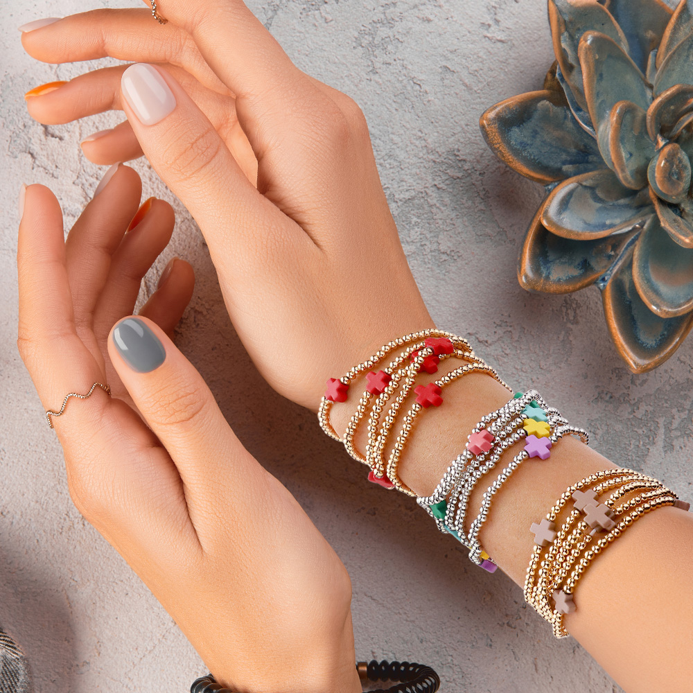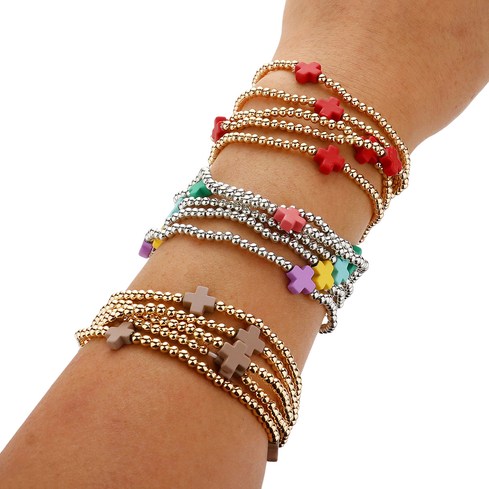 5PCS - Cross Pointed Metal Ball Beaded Stretch Multi Layered Bracelets