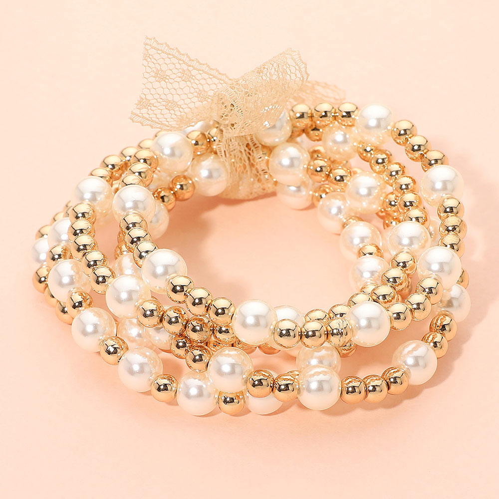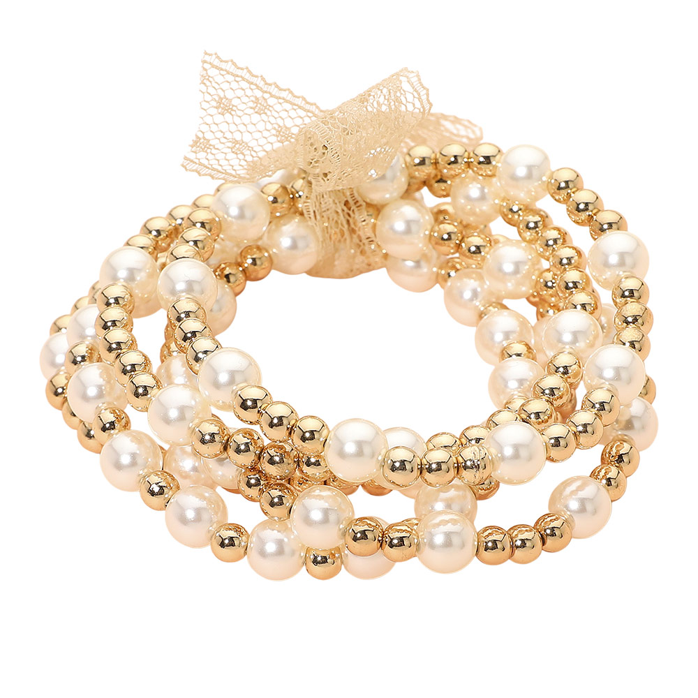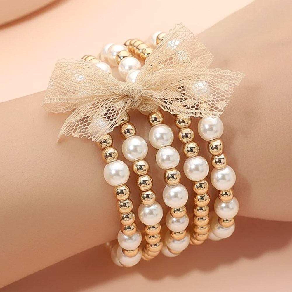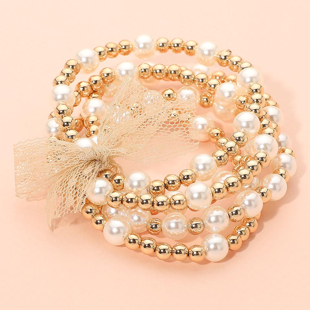 Details • Size : 1.5" H • Stretchable • This layered pearl bead bracelet set adds a refined, feminine touch to any look. Designed with multiple strands and a delicate bow accent, it brings timeless charm and subtle sophistication, making it a perfect styling piece for both everyday wear and special occasions. • Lead and Nickel Compliant