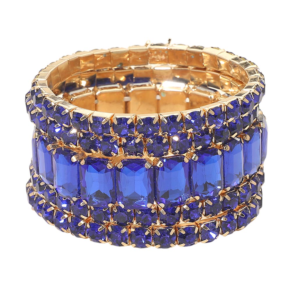 5PCS - Emerald Cut Round Stone Stretch Evening Bracelets 5PCS - Emerald Cut Round Stone Stretch Evening Bracelets 5PCS - Emerald Cut Round Stone Stretch Evening Bracelets