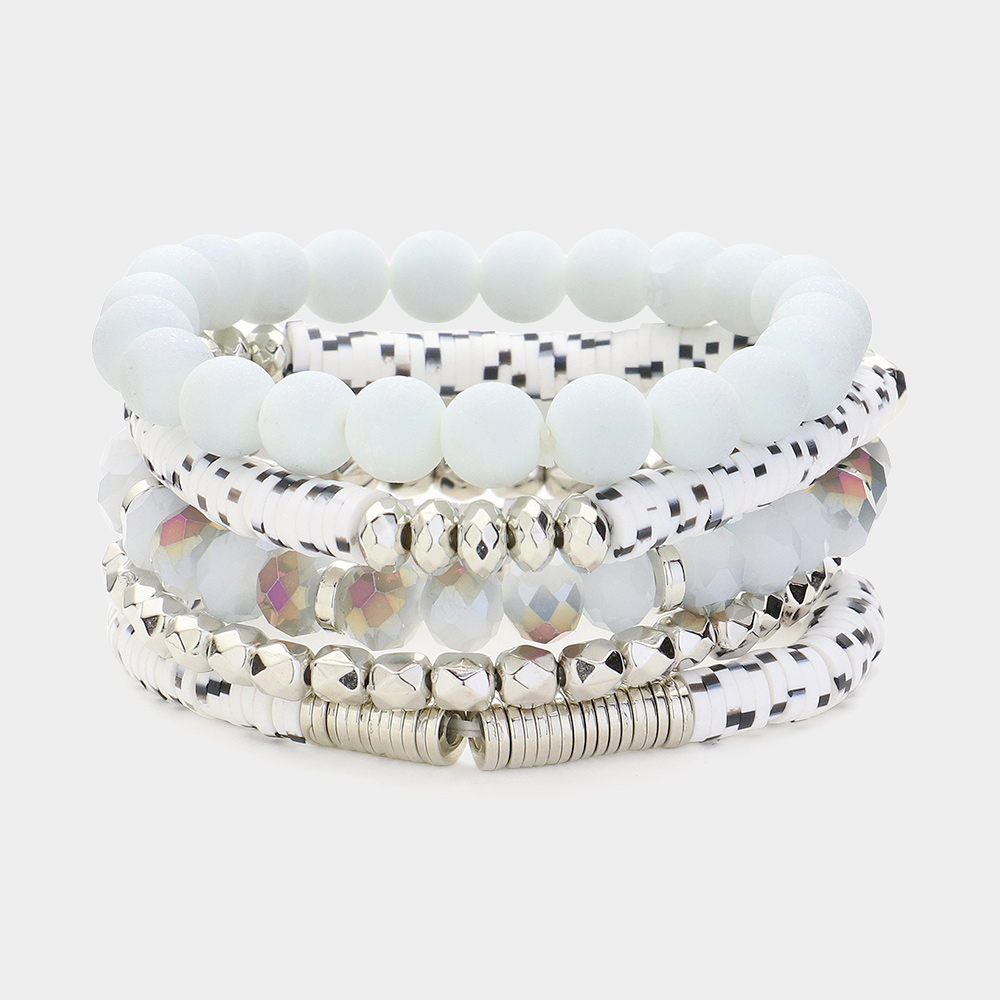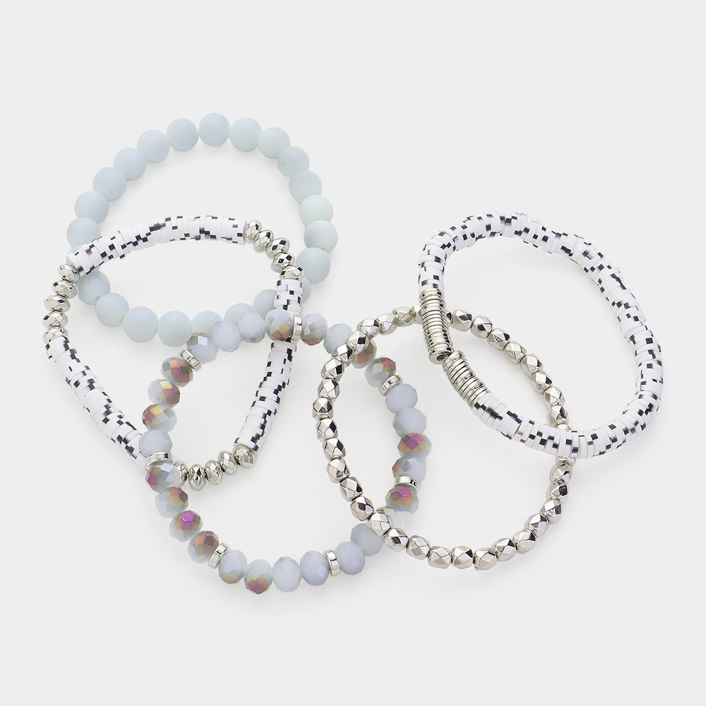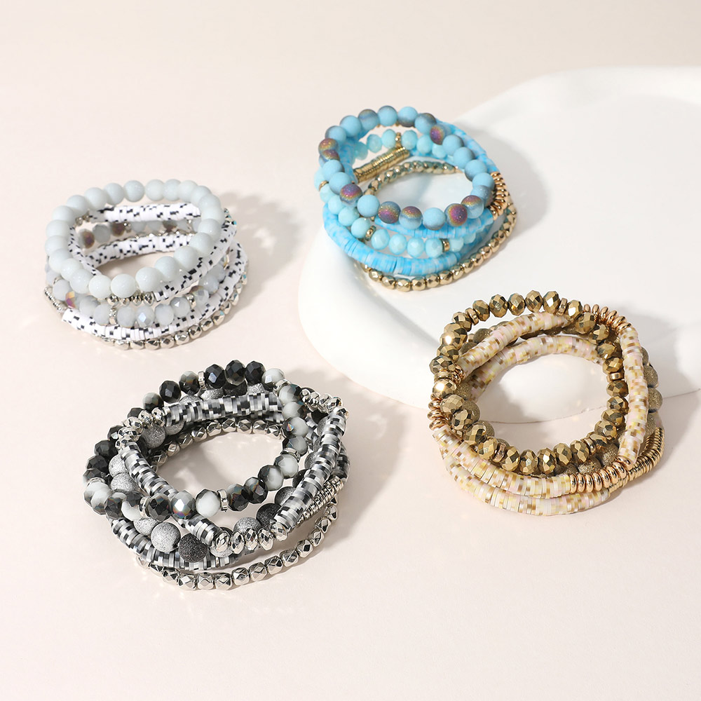 5PCS - Faceted Beads Heishi Beaded Multi Layered Bracelets