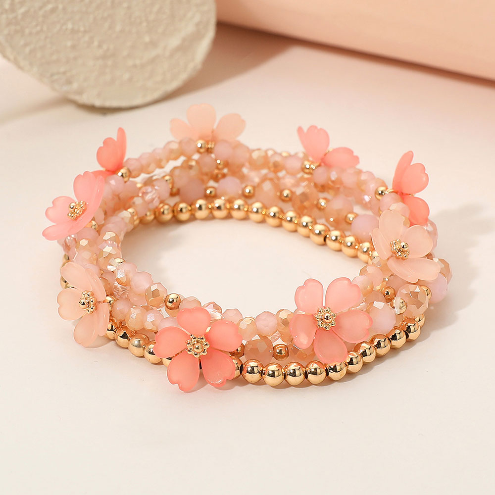 5PCS - Floral Faceted Beaded Stretch Multi Layered Bracelets