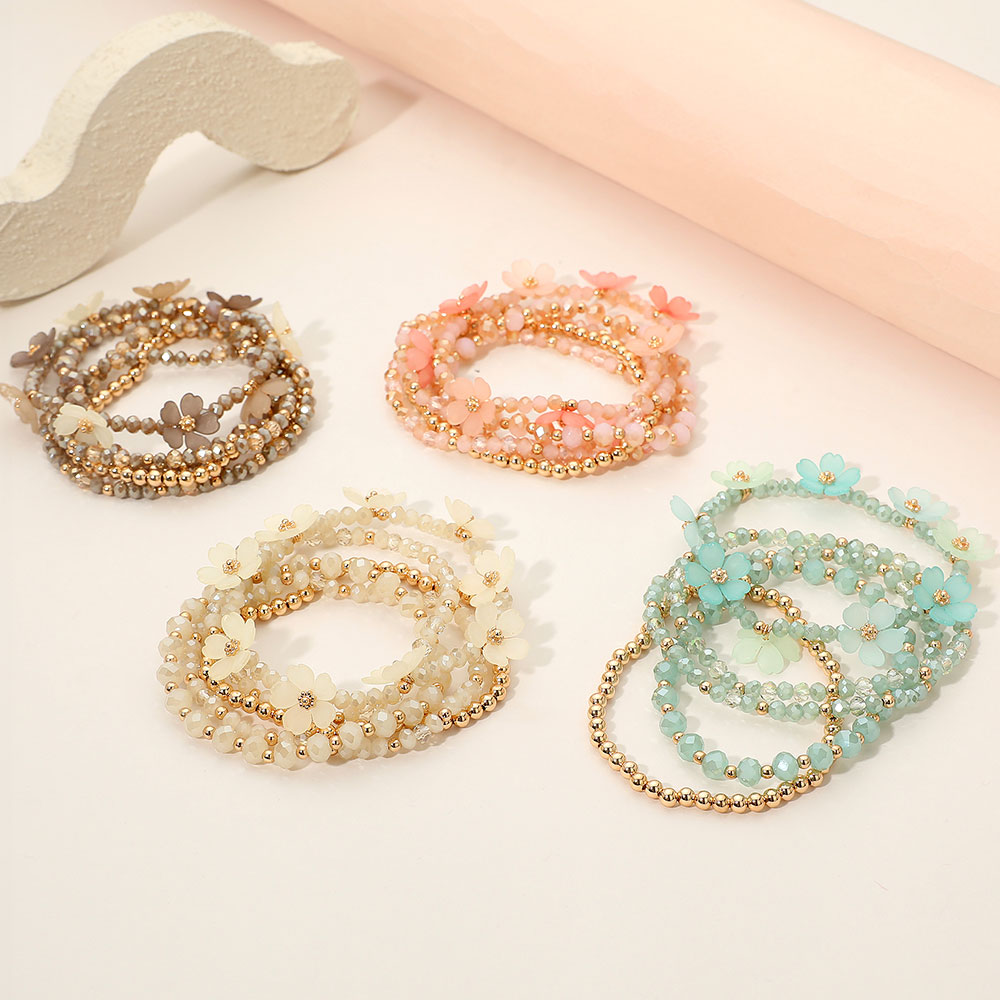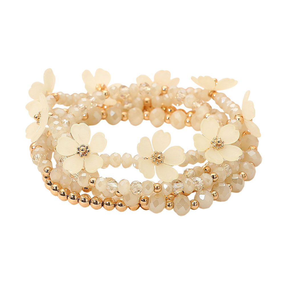 5PCS - Floral Faceted Beaded Stretch Multi Layered Bracelets