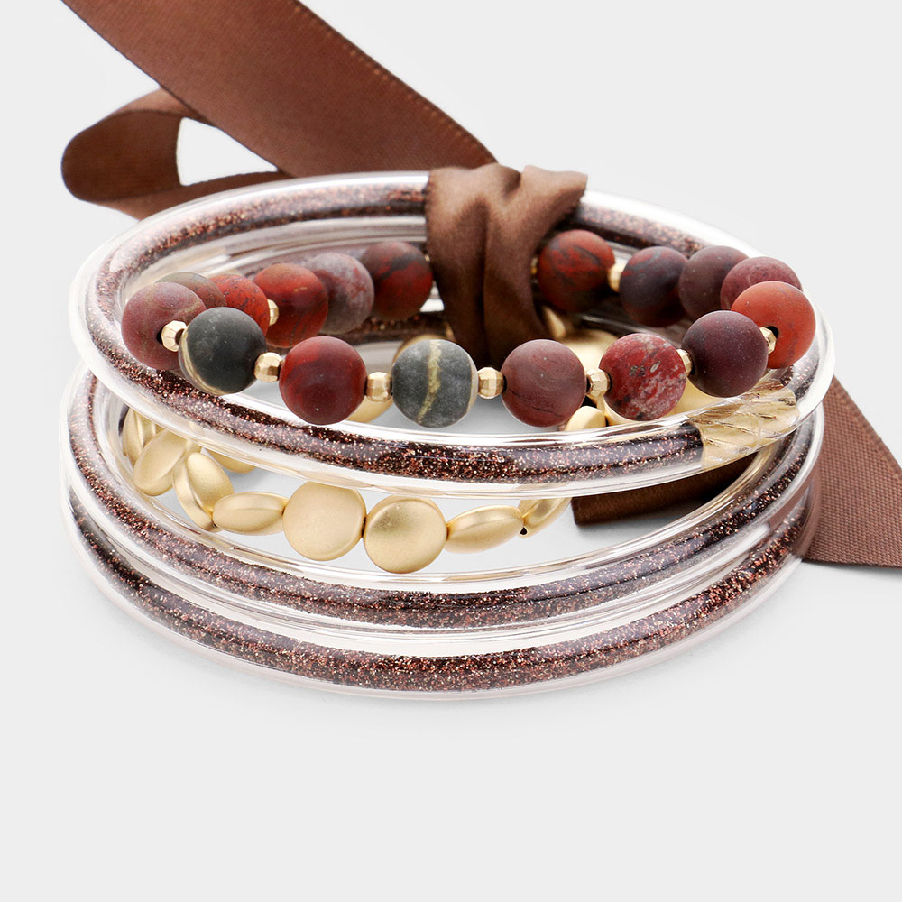 5PCS - Glitter Jelly Tube Semi Precious Ball Layered Bracelet