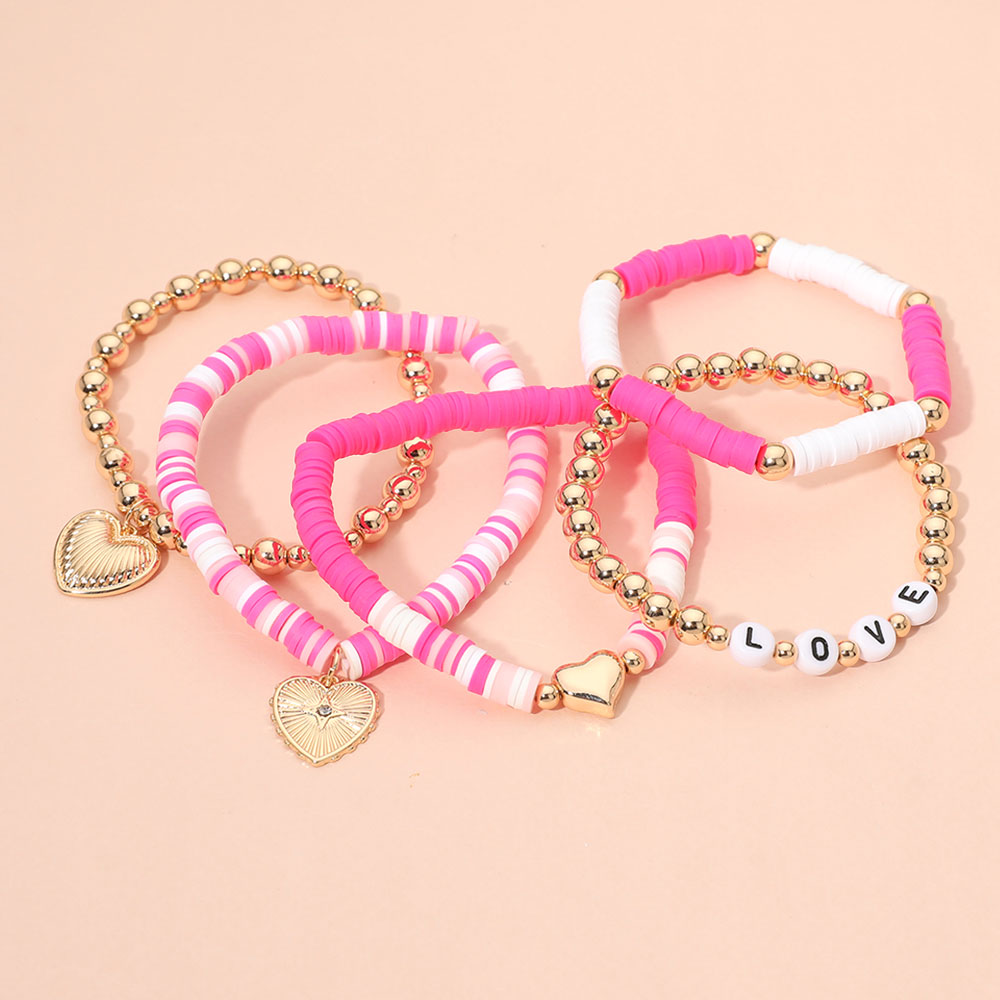 5PCS - Heart Charm LOVE Message Metal Ball Heishi Beaded Stretch Multi Layered Bracelets 5PCS - Heart Charm LOVE Message Metal Ball Heishi Beaded Stretch Multi Layered Bracelets 5PCS - Heart Charm LOVE Message Metal Ball Heishi Beaded Stretch Multi Layered Bracelets