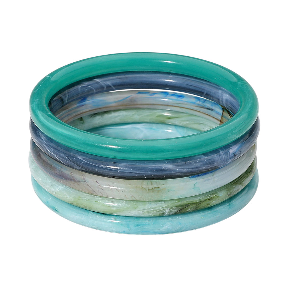 5PCS - Marbled Resin Stackable Multi Layered Bangle Bracelets