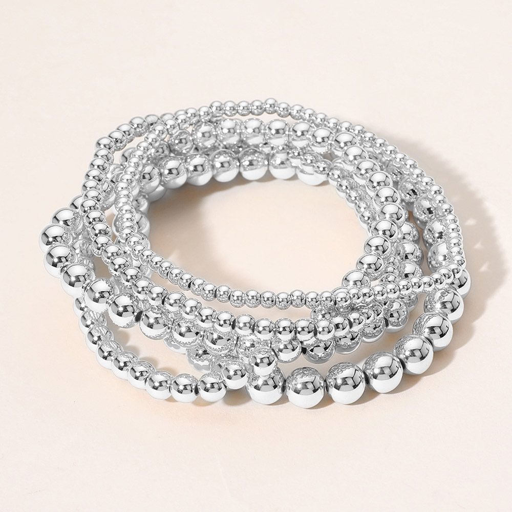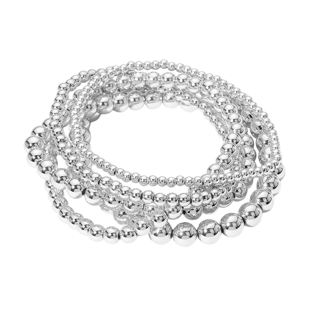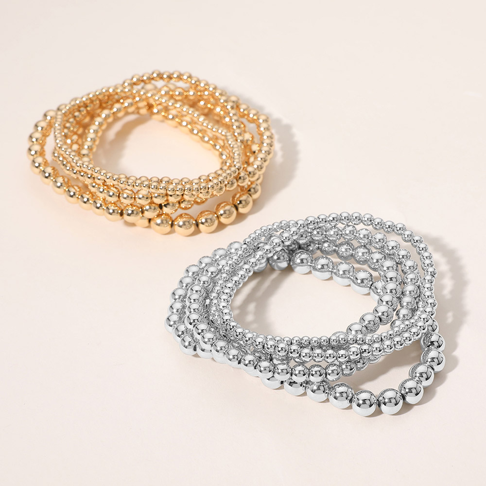 5PCS - Metal Ball Beaded Stretch Multi Layered Bracelets