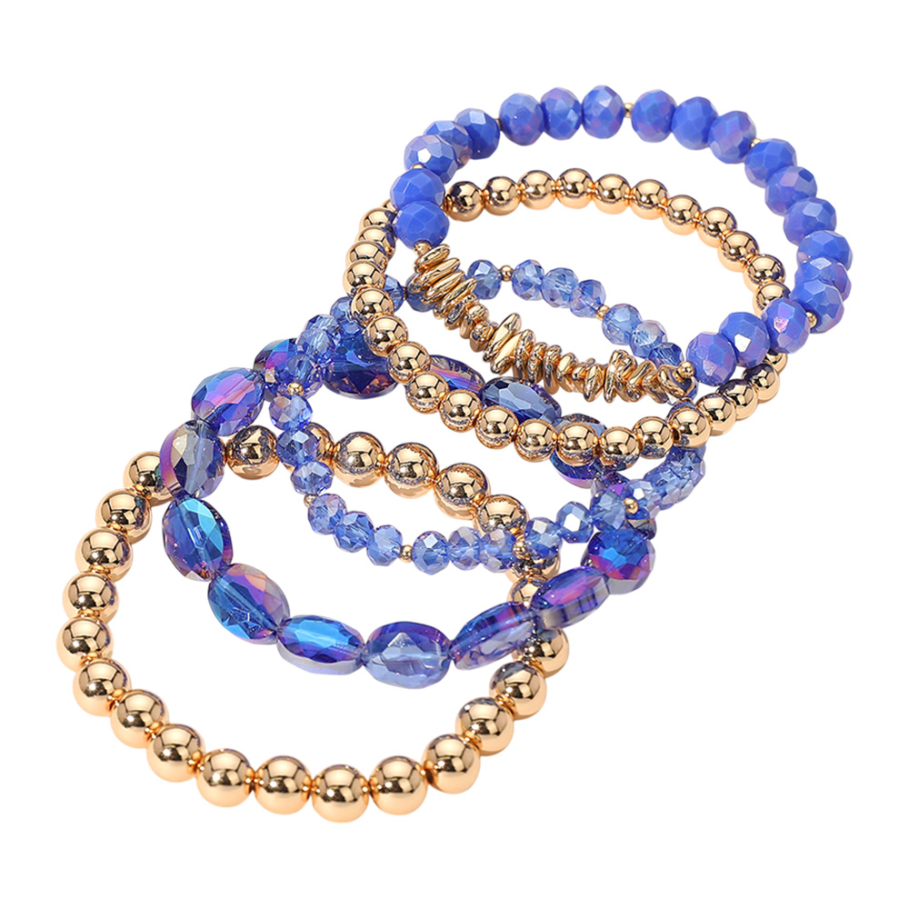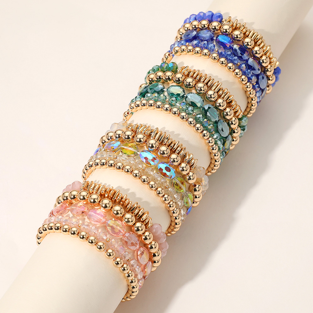 5PCS - Metal Ball Faceted Beaded Stretch Multi Layered Bracelets