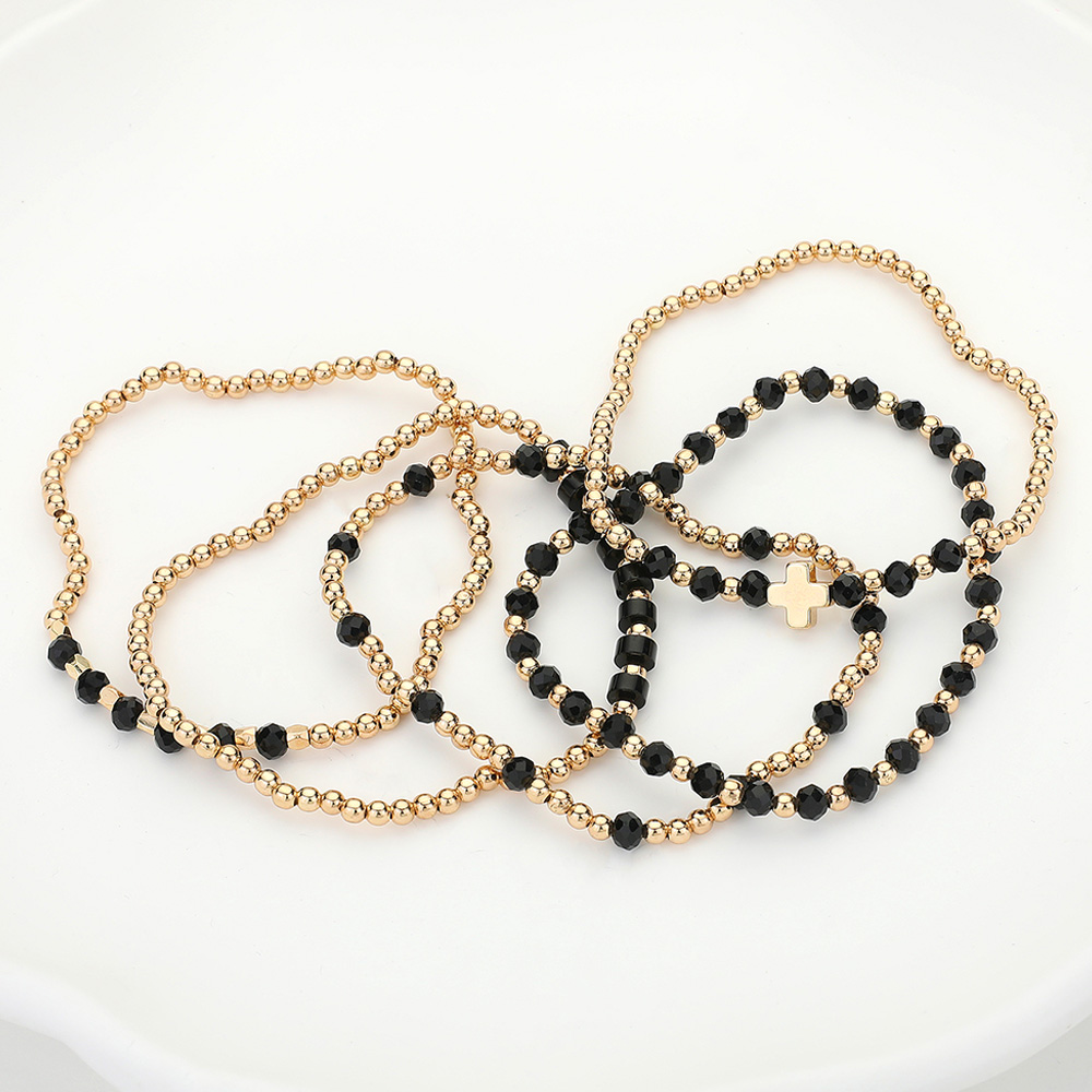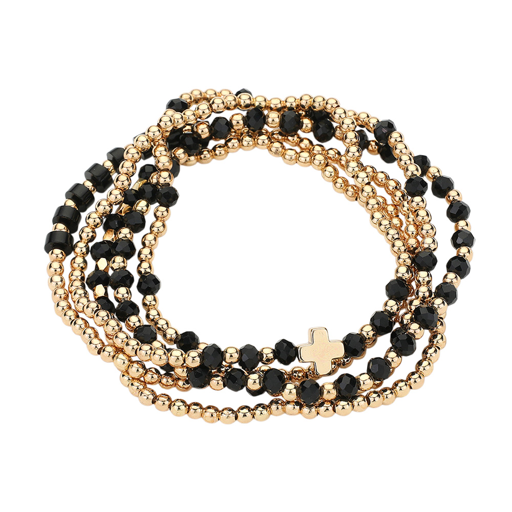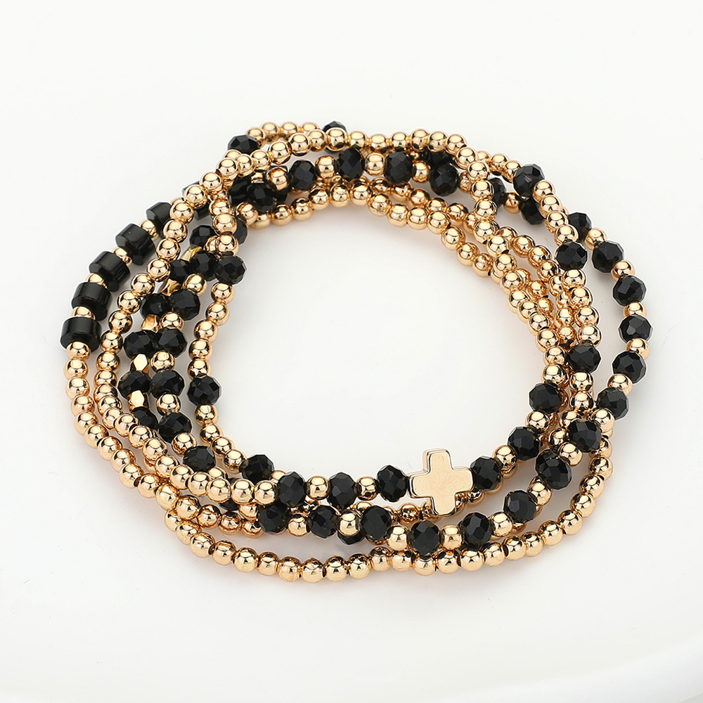 5PCS - Metal Cross Pointed Faceted Beaded Stretch Multi Layered Bracelets