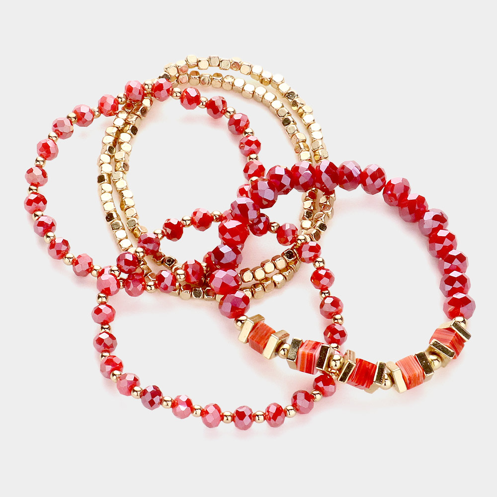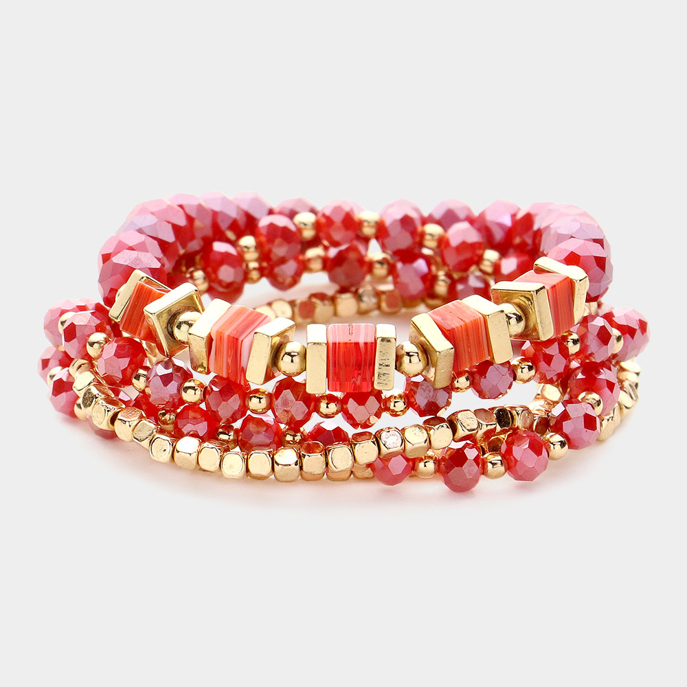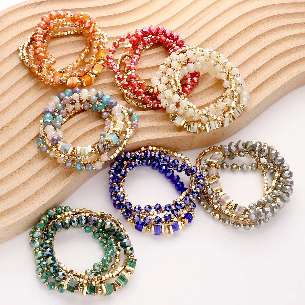 5PCS - Metal Cube Faceted Beaded Multi Layered Stretch Bracelets
