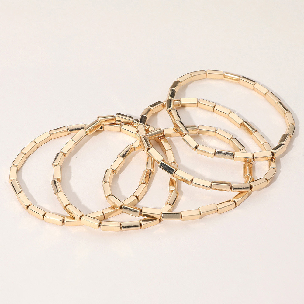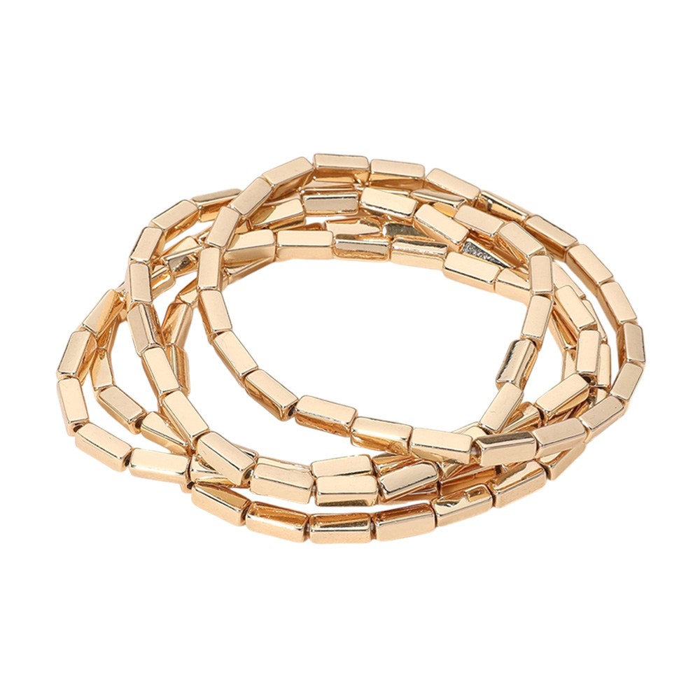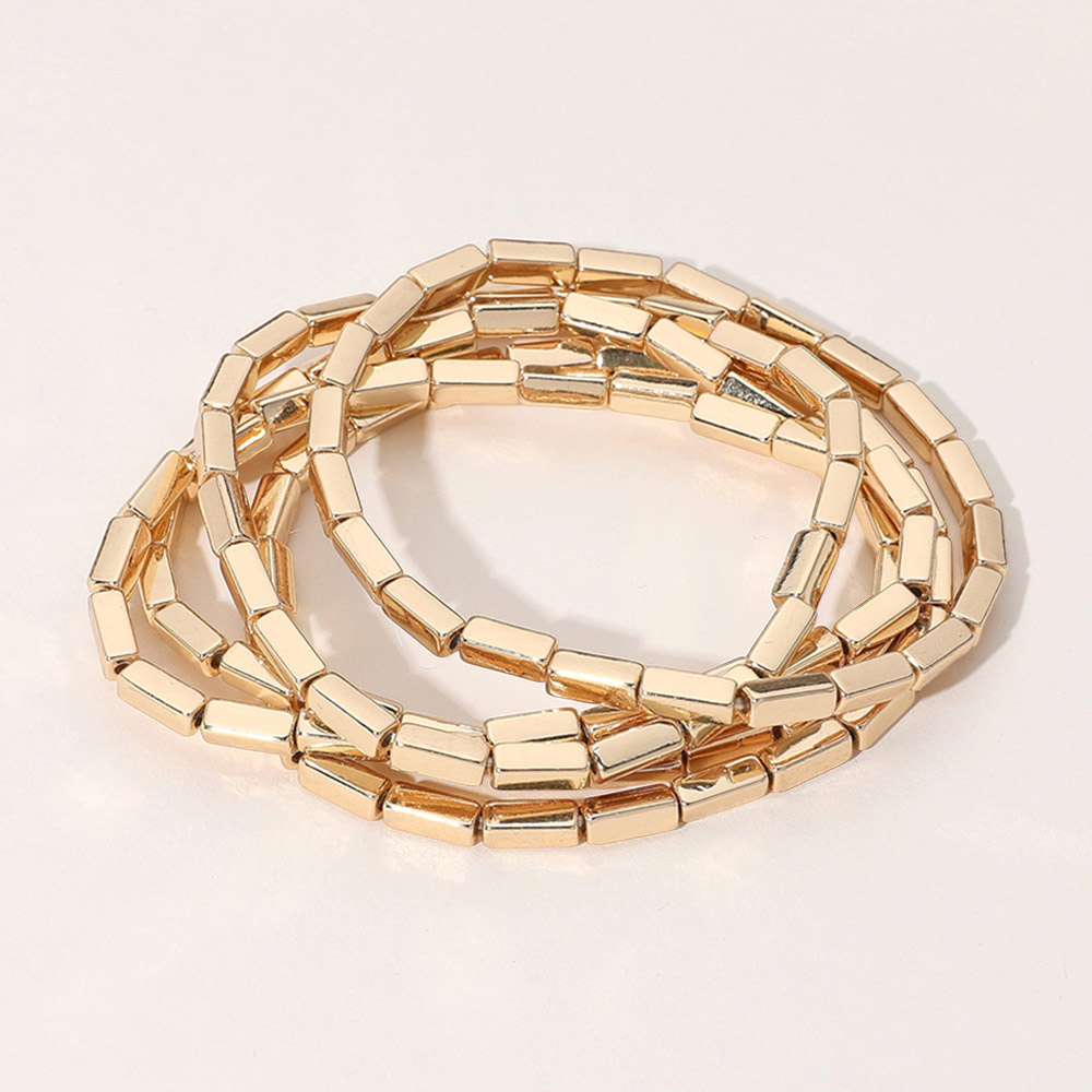 5PCS - Metal Cylinder Beaded Stretch Multi Layered Bracelets