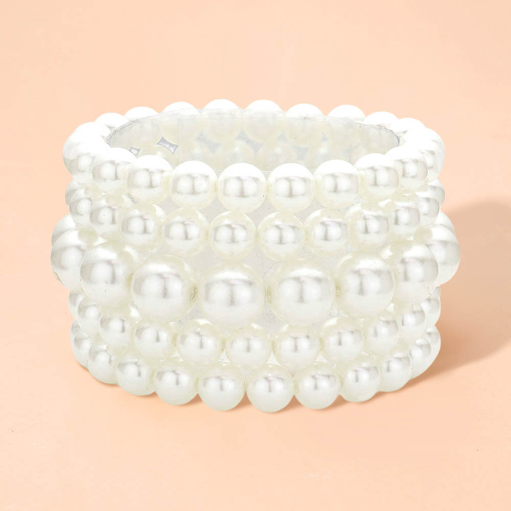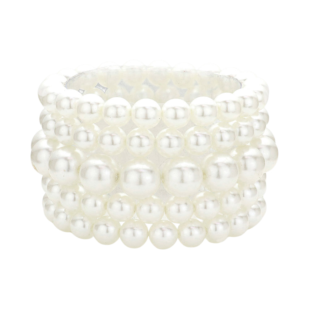 Details • Size : 2" H • Stretchable • Elegant stretch bracelet designed with multiple rows of lustrous pearl-like beads. A timeless statement accessory perfect for weddings, parties, and formal occasions, adding classic sophistication. • Lead and Nickel Compliant