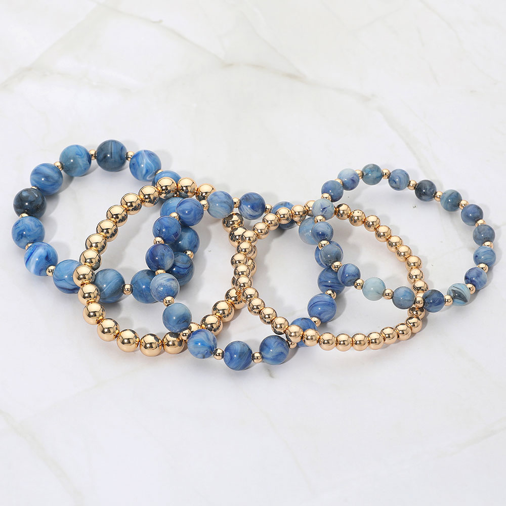 • This multi-layer beaded stretch bracelet set features a mix of polished spheres and translucent marbled accents, offering a rich, dimensional look. Flexible and easy to wear, it adds an eye-catching stacked style that enhances both casual and elevated outfits with warm, radiant detail.