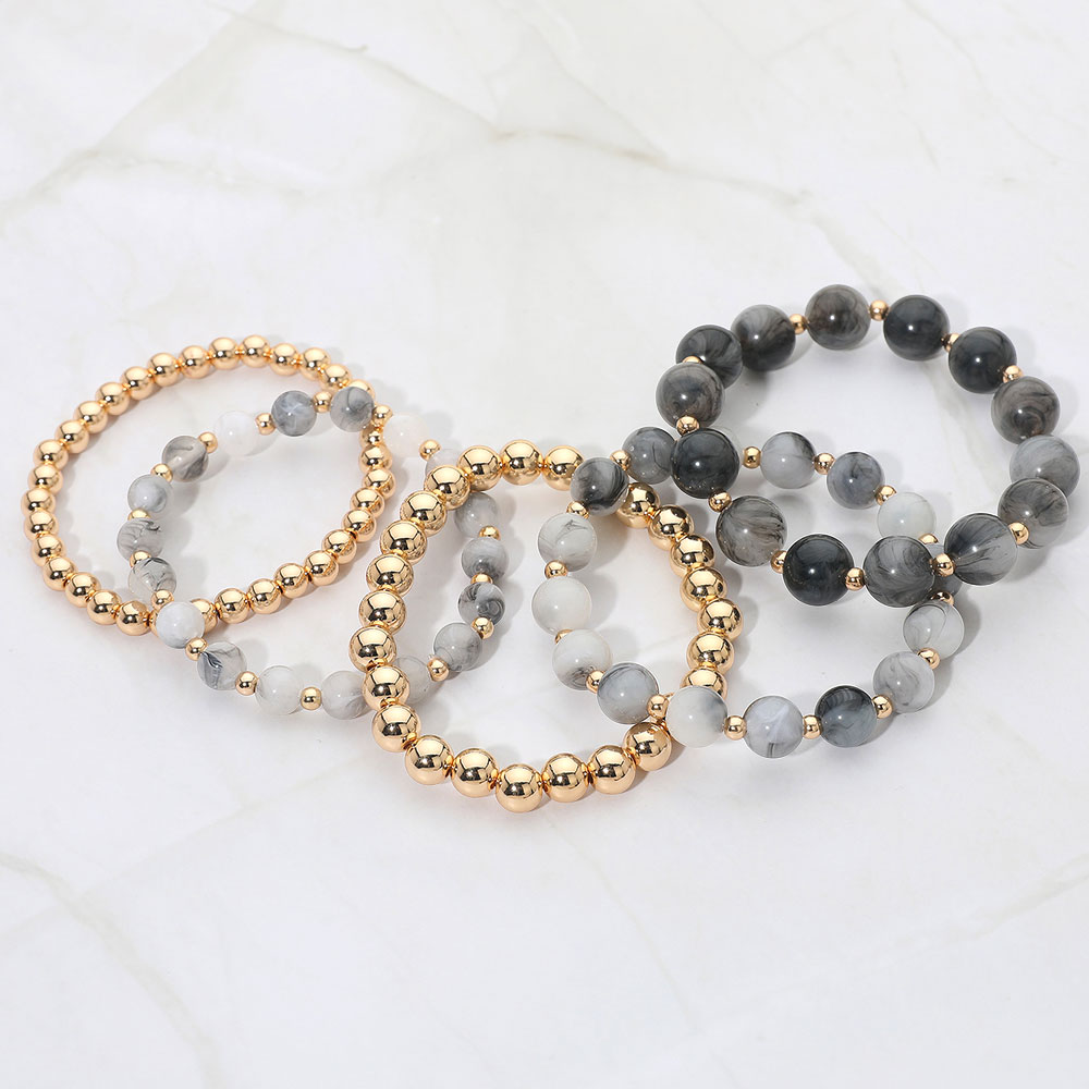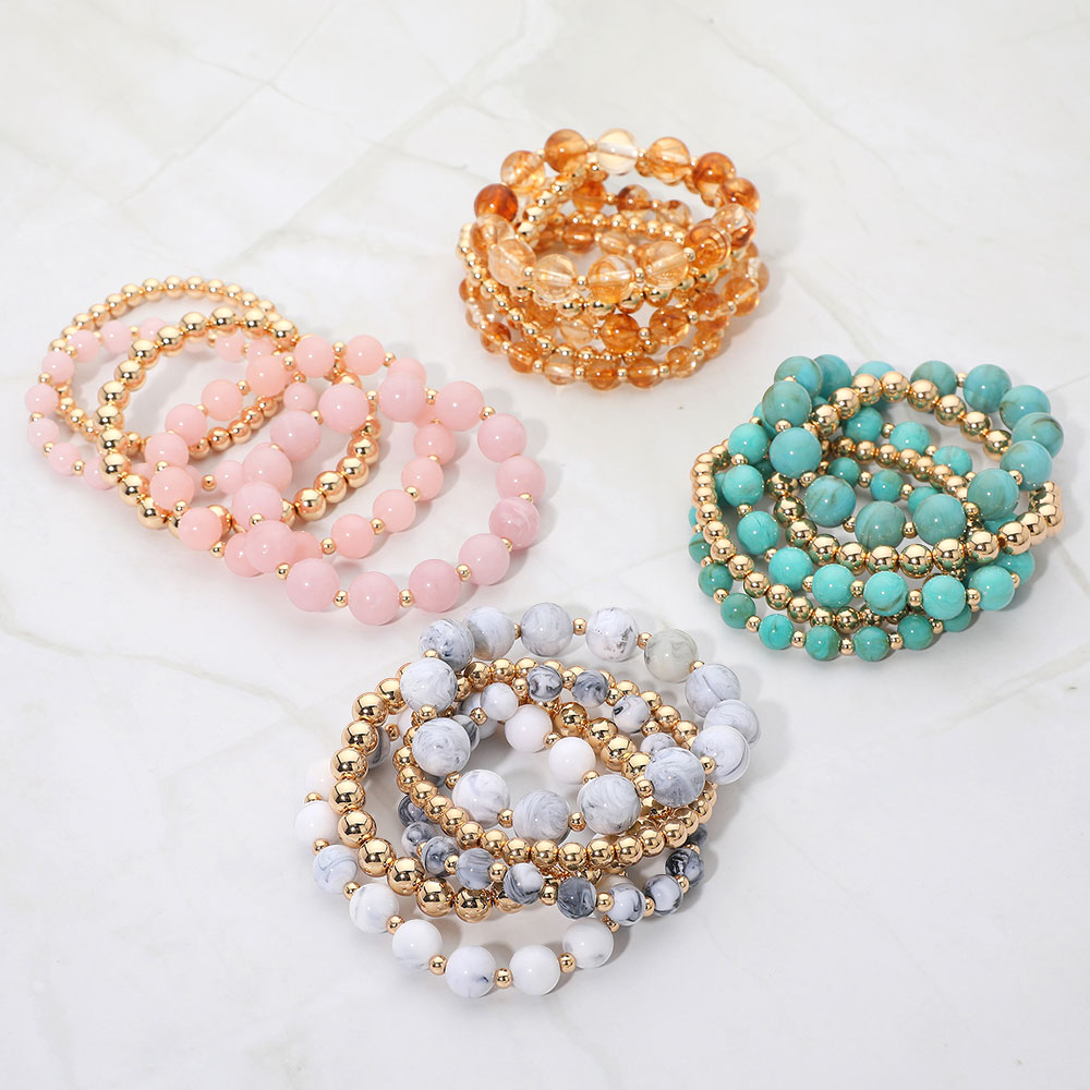 5PCS - Resin Metal Ball Beaded Stretch Multi Layered Bracelets